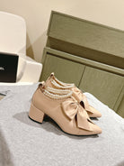 CC 24A Pearl Bow Slingbacks 65mm Beige Sheepskin 447466