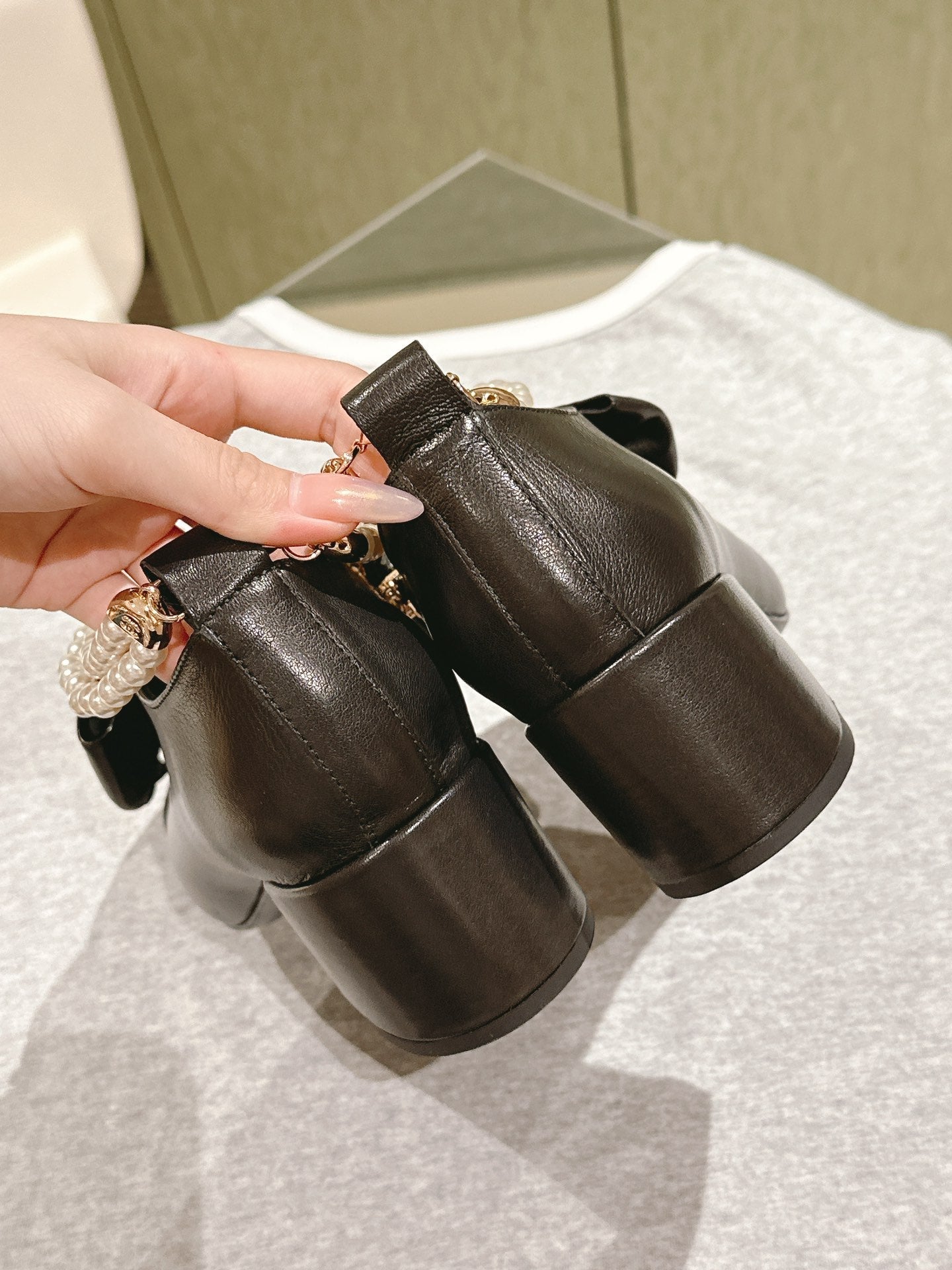CC 24A Pearl Bow Slingbacks 65mm Black Sheepskin 447465