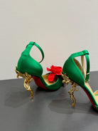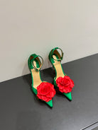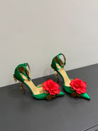CC 25 Flower Rose Pumps Green Silk 337165