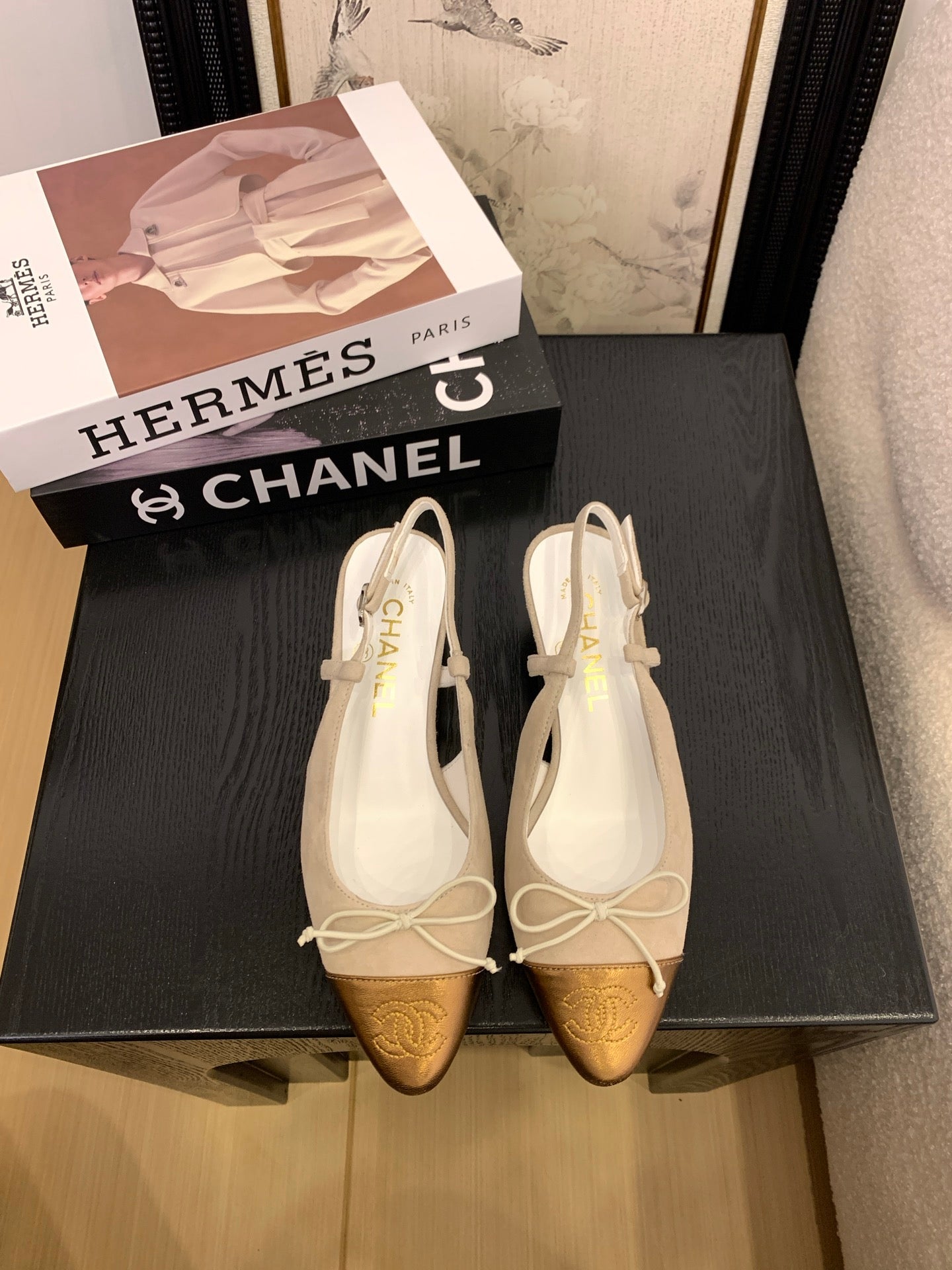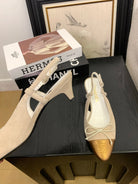 CC 25 Slingbacks 45 Bow With Beige Suede Mix Gold Sheepskin 277673