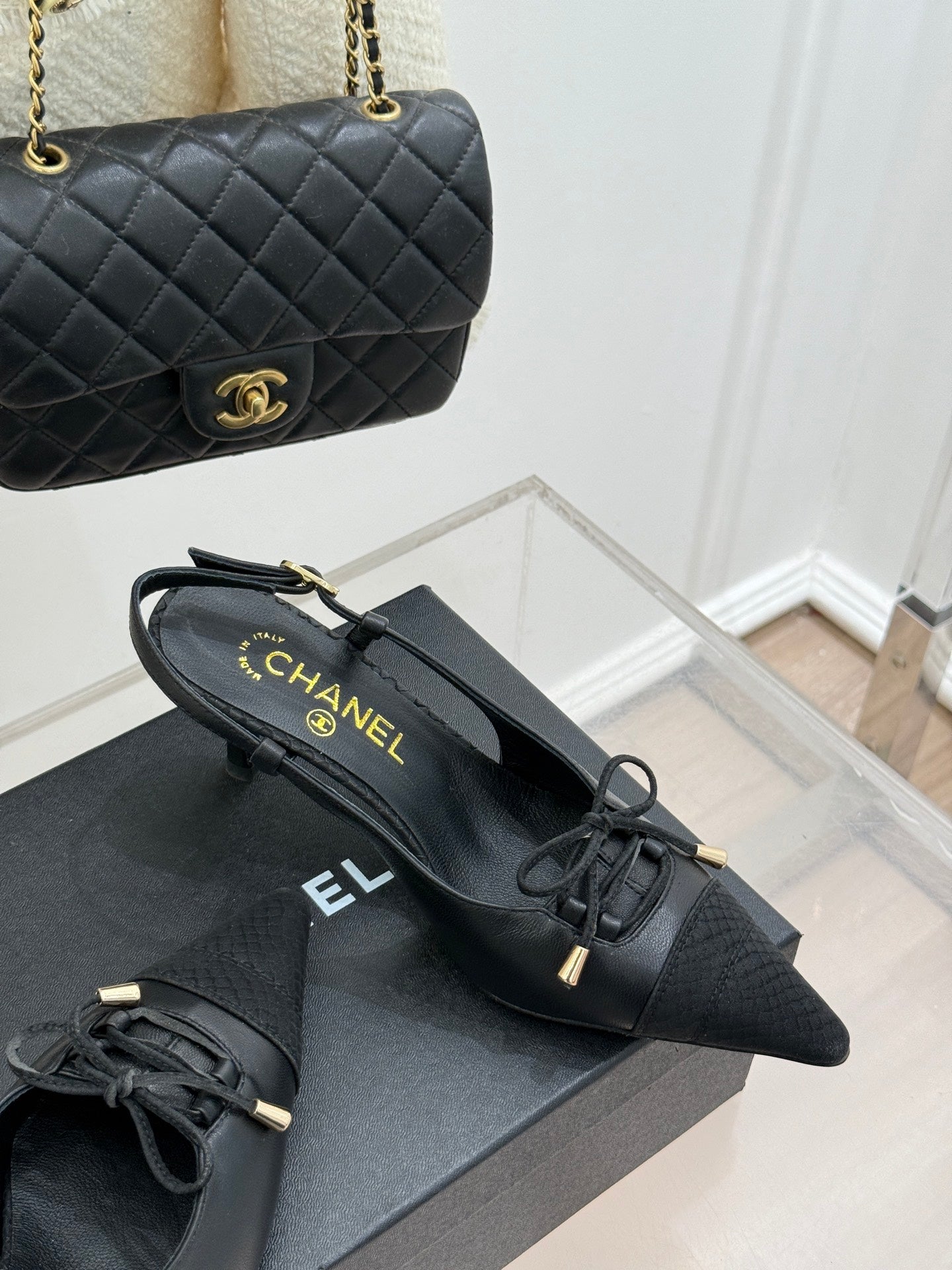 CC 25C Bowknot Slingback Sandal 60mm Black Sheepskin Black Grosgrain 265655