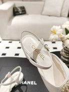 cc 25p mary jane white lambskin black grosgrain with pearl logo 237512