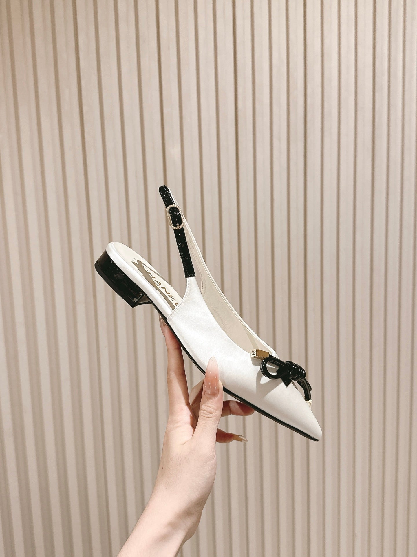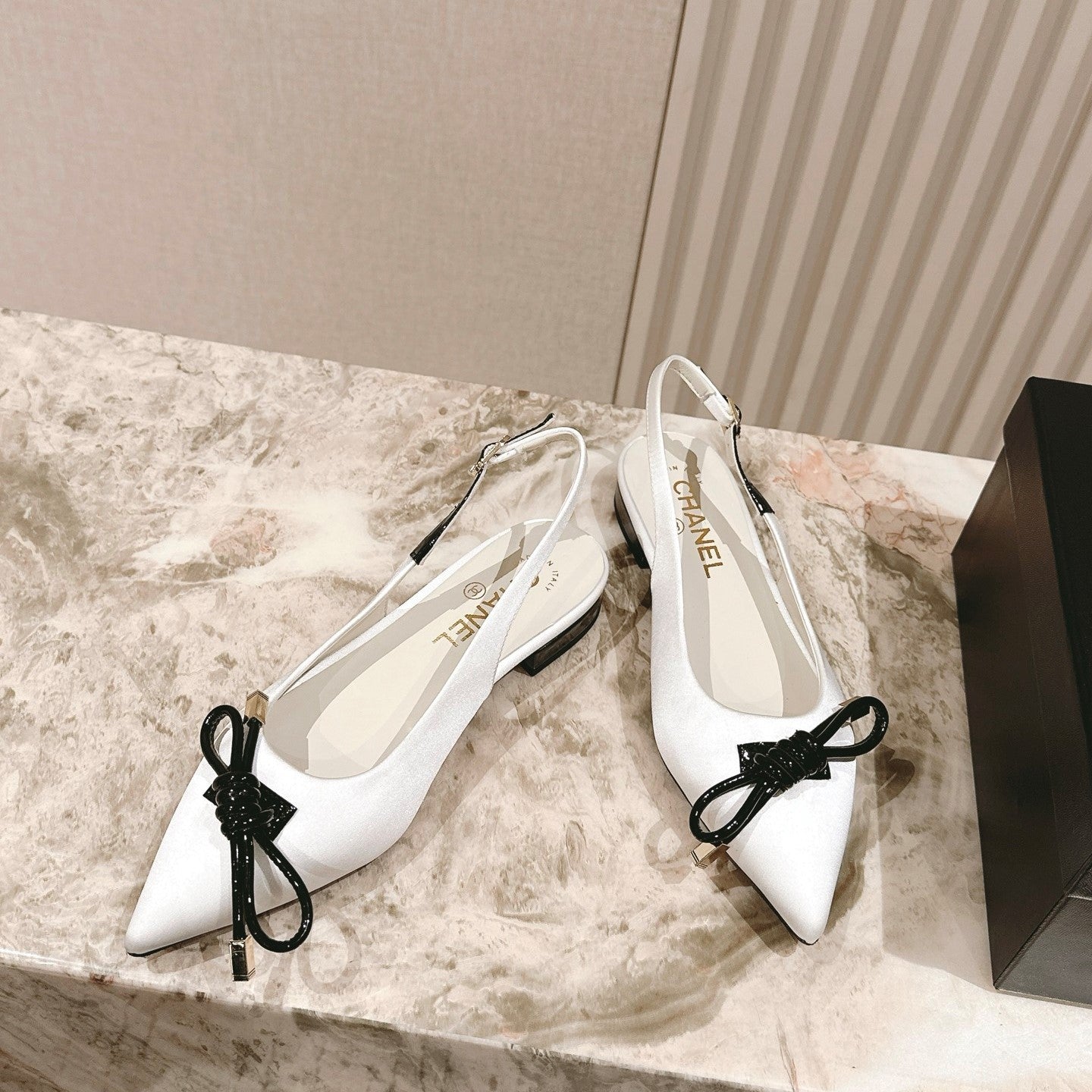 CC 25ss Bow Tie Slingbacks 20mm White Satin & Patent Leather 447409