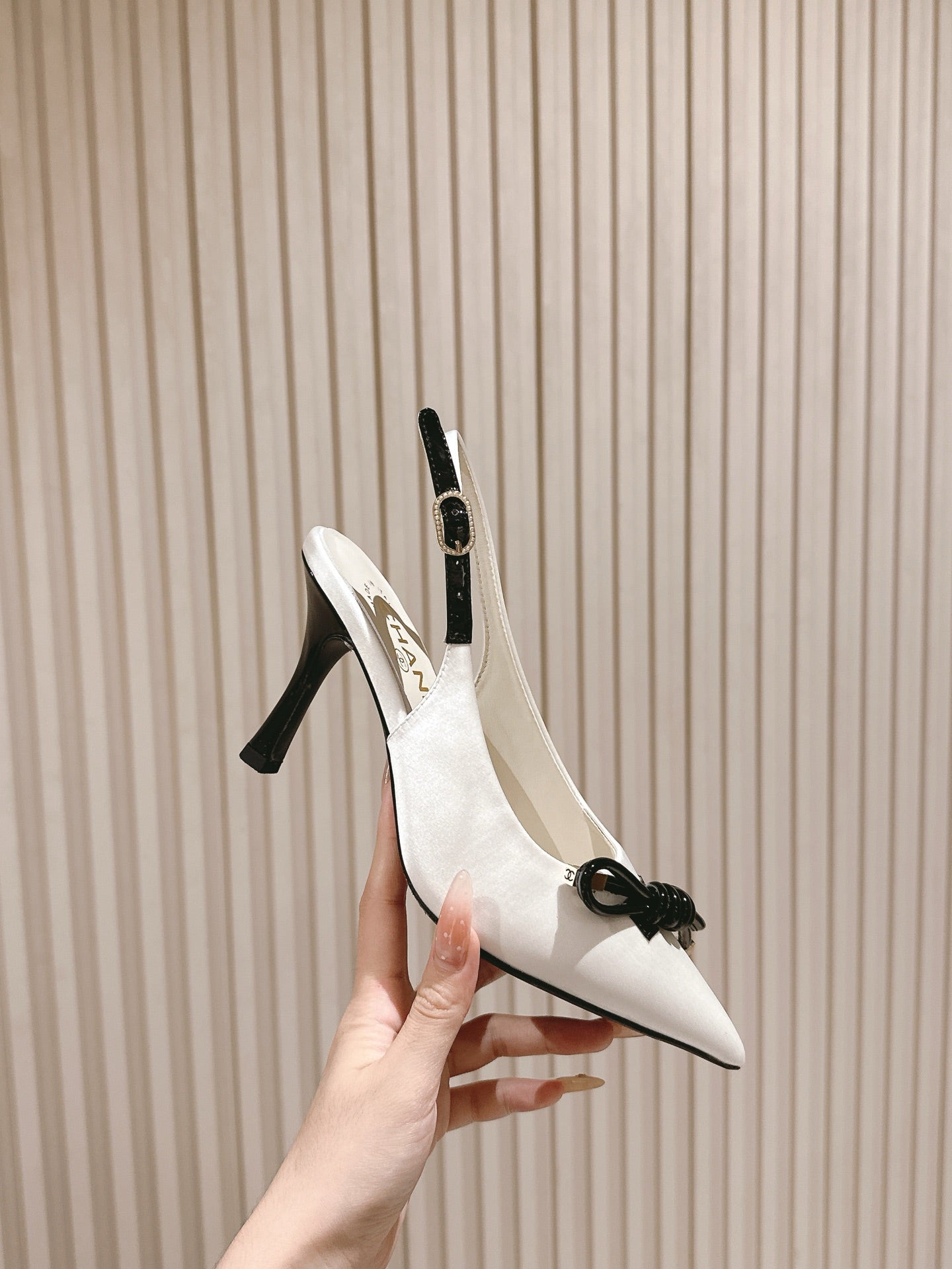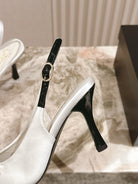 CC 25ss Bow Tie Slingbacks 85mm White Satin & Patent Leather 447412