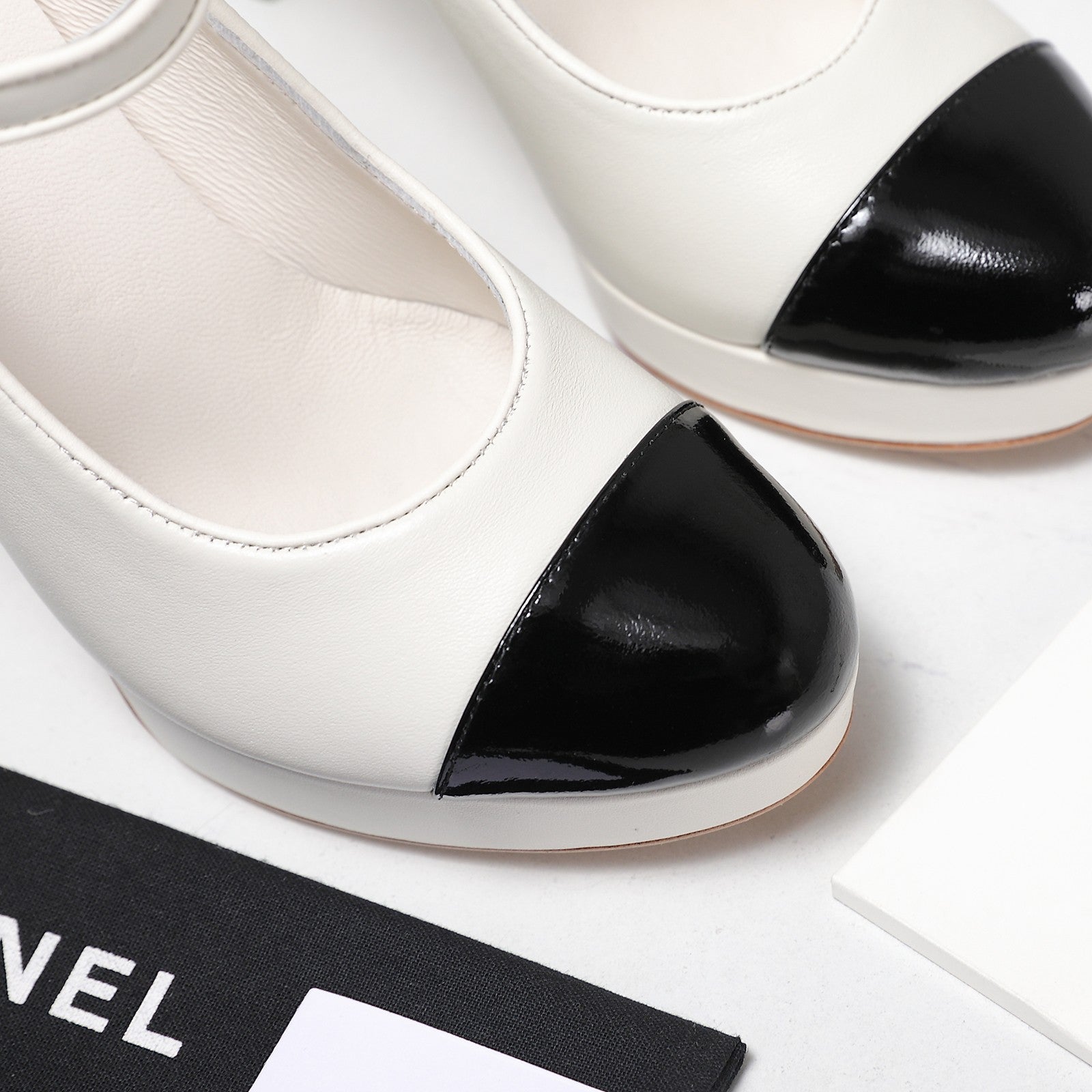 CC Buckle Platform Pumps 100mm White Lambskin 425879