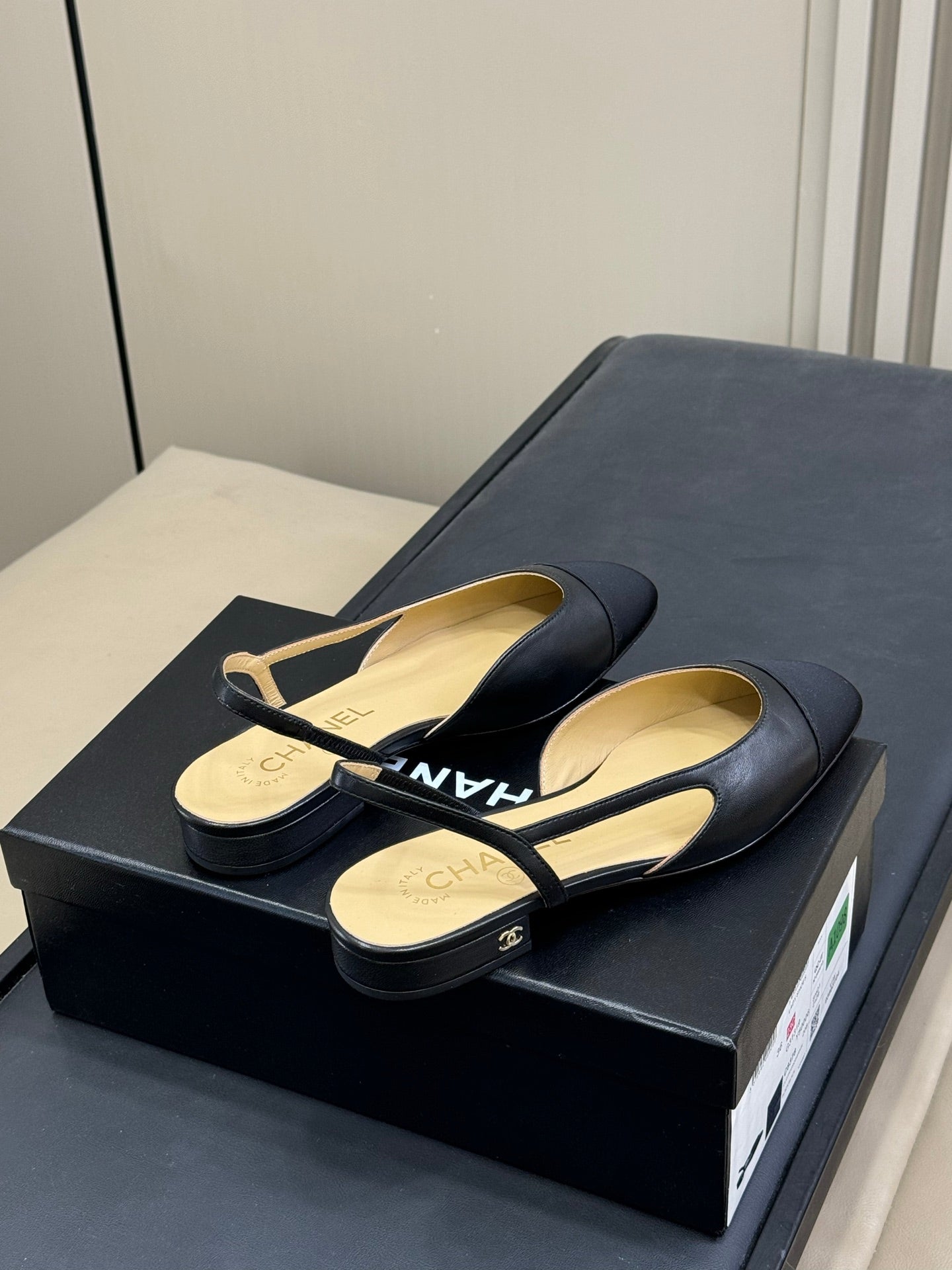CC Classic Slingback Black Beige Goatskin Black Grosgrain 282286