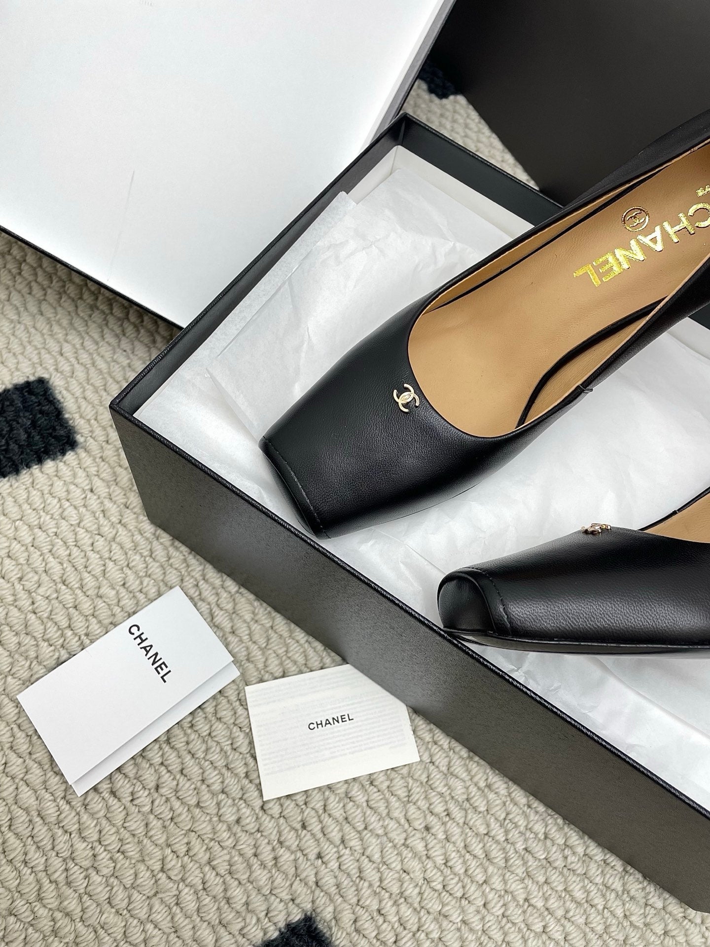 CC Square-Toe Pumps 65mm Black Sheepskin 427015