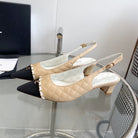 slingbacks pumps 45 beige quilted calfskin black grosgrain