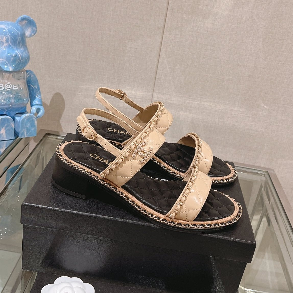 slingbacks sandal 50 beige black quilted lambskin