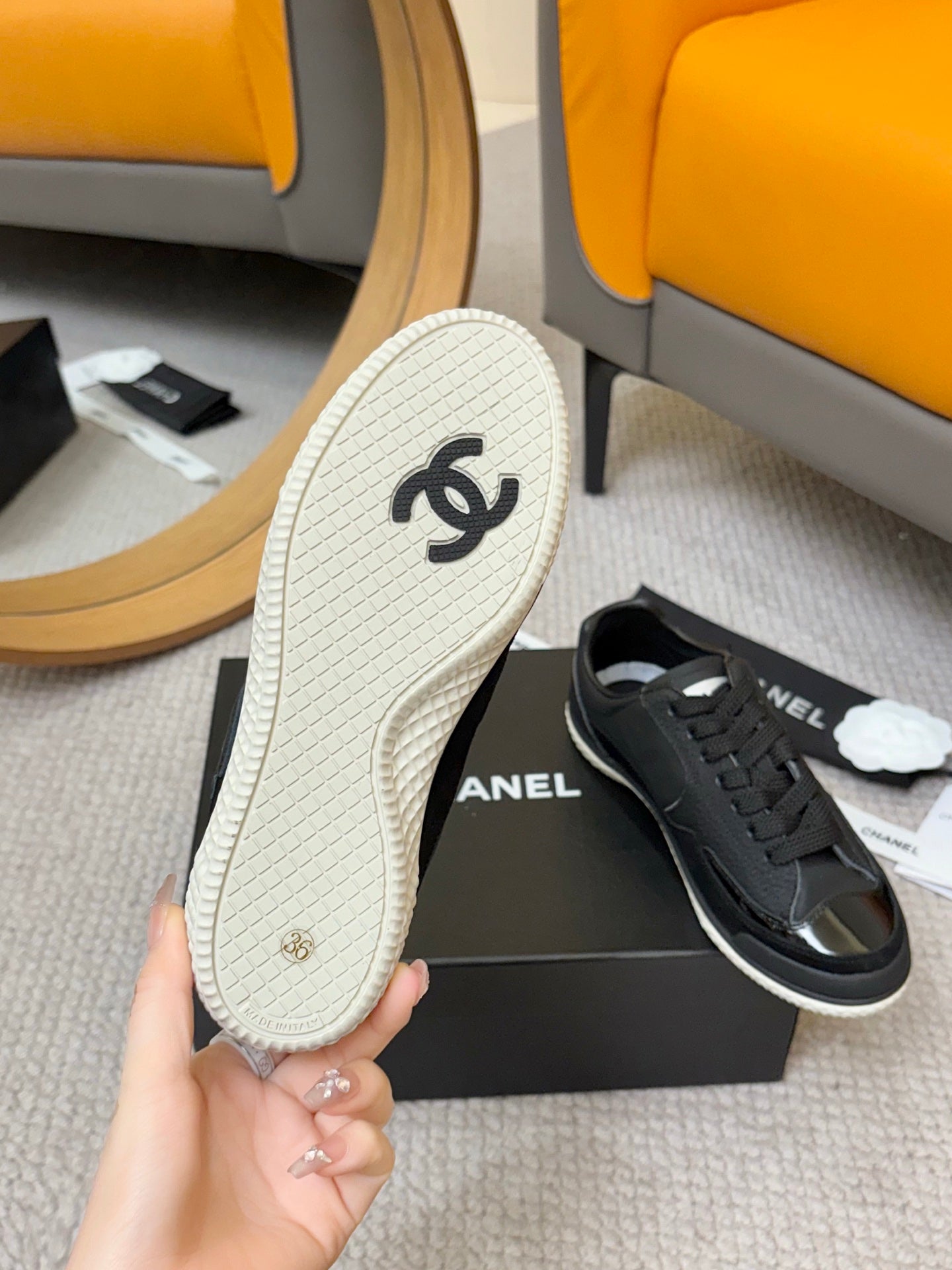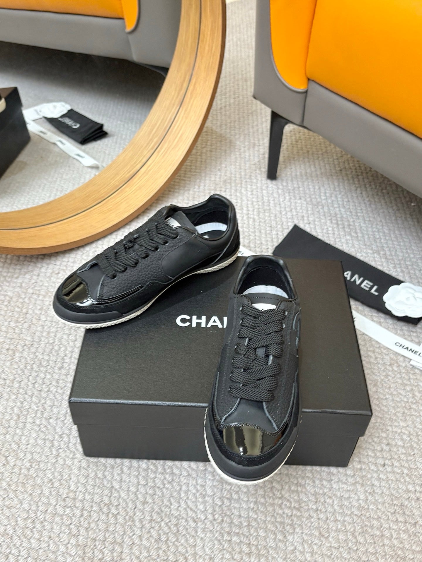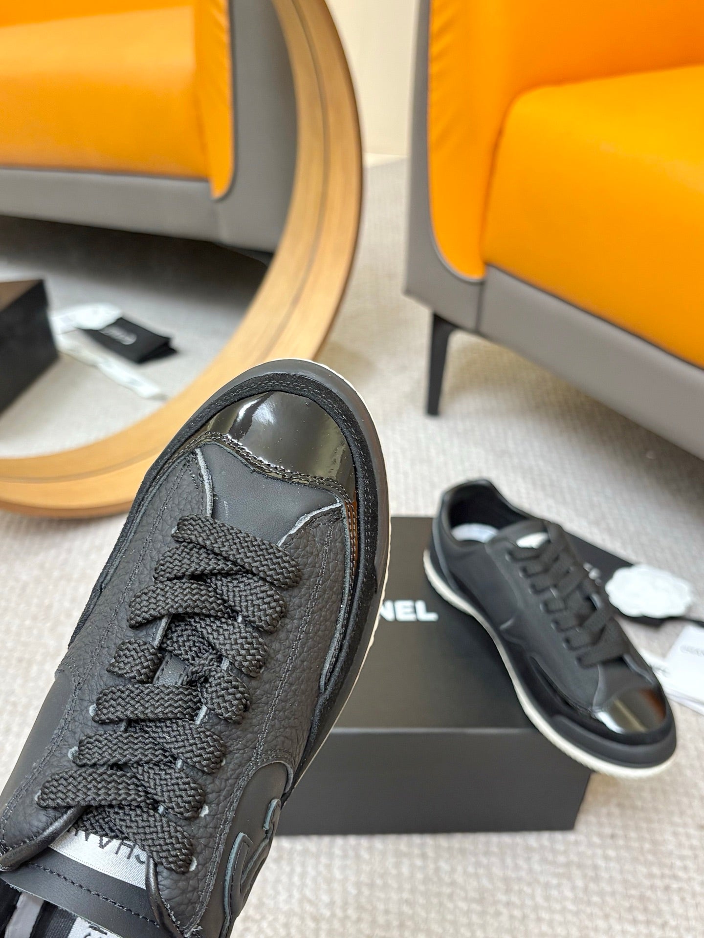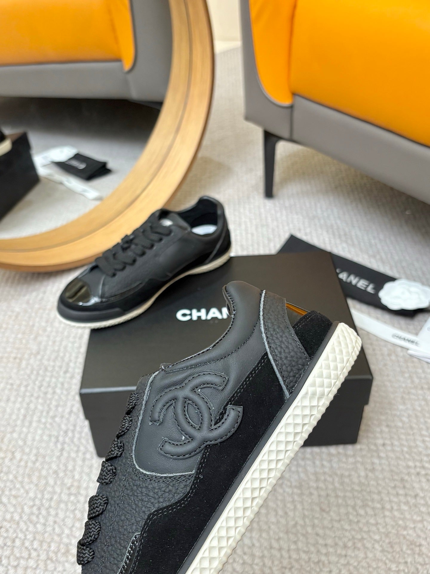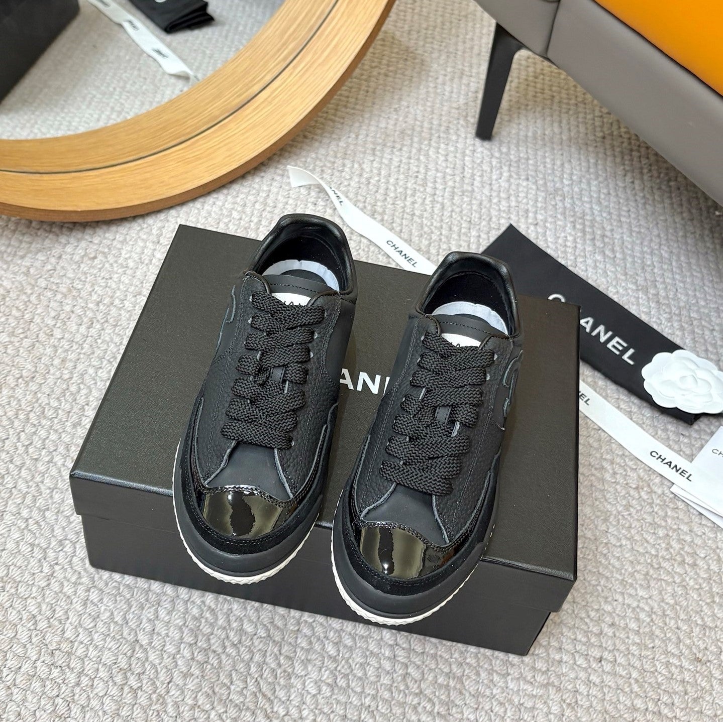 CC 25C Casual Sneakers Black Cowhide Suede Patent Leather 528156