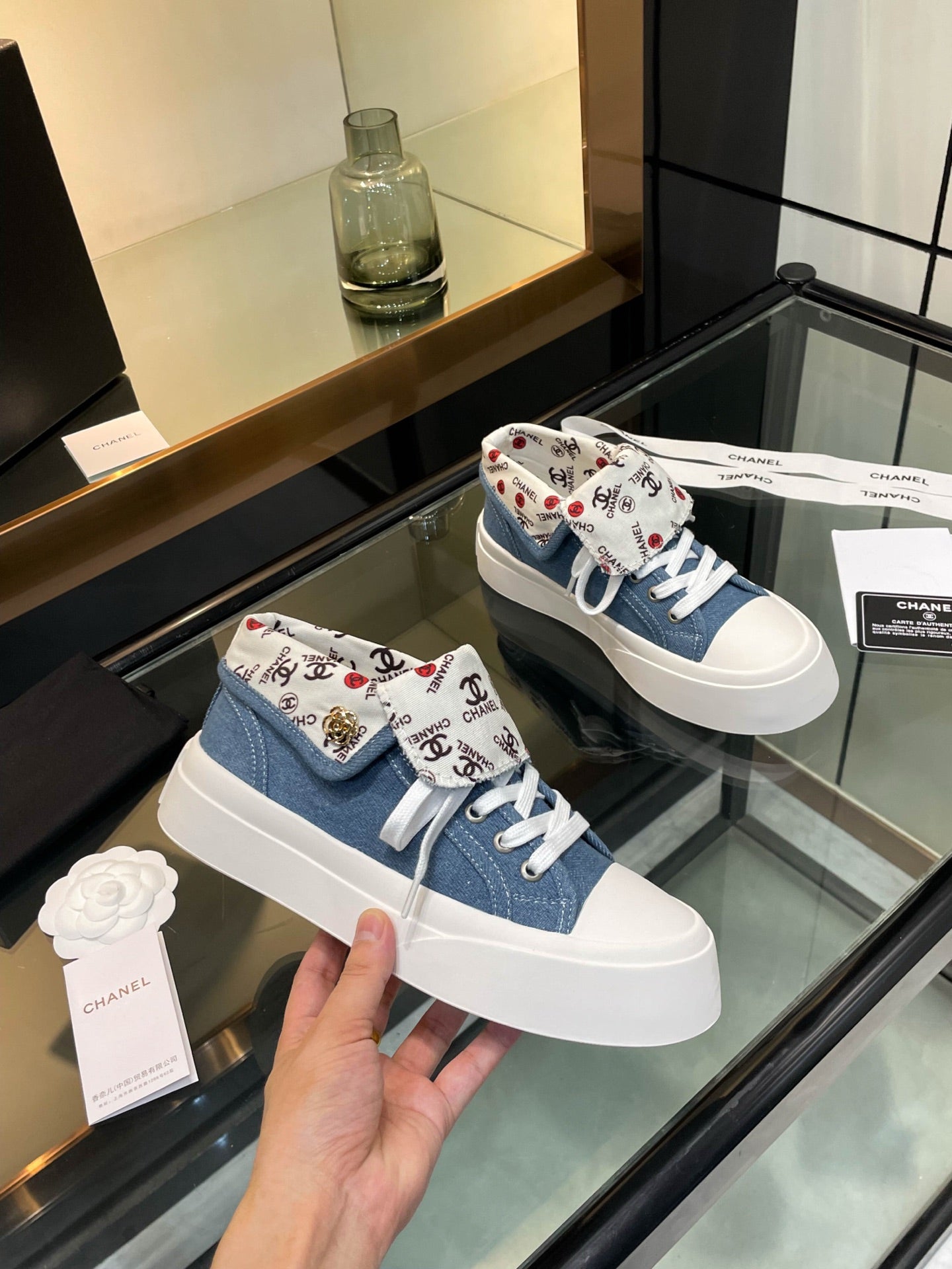 CC 25SS Biscuit Shoes 50mm Blue Canvas 413826