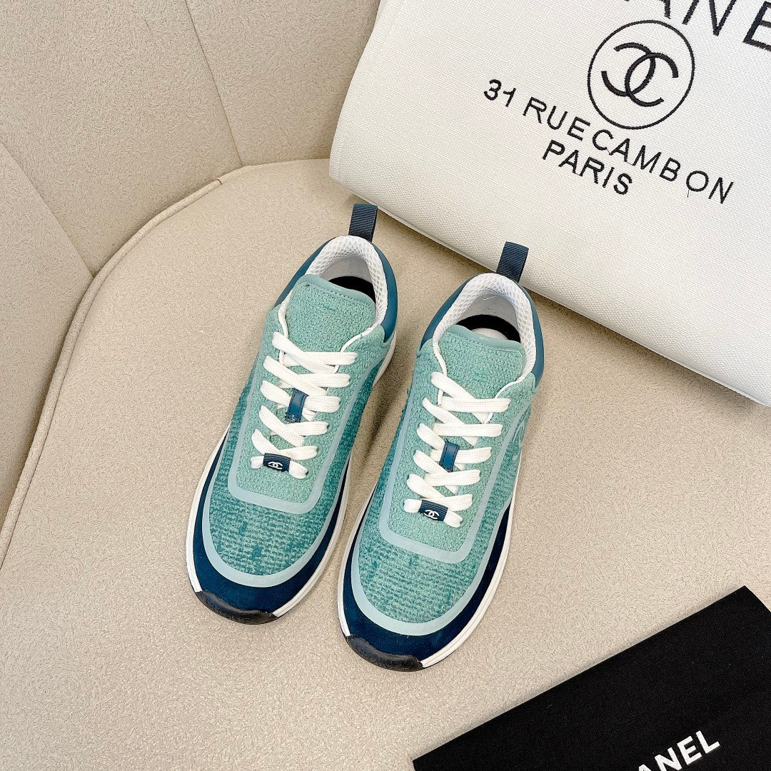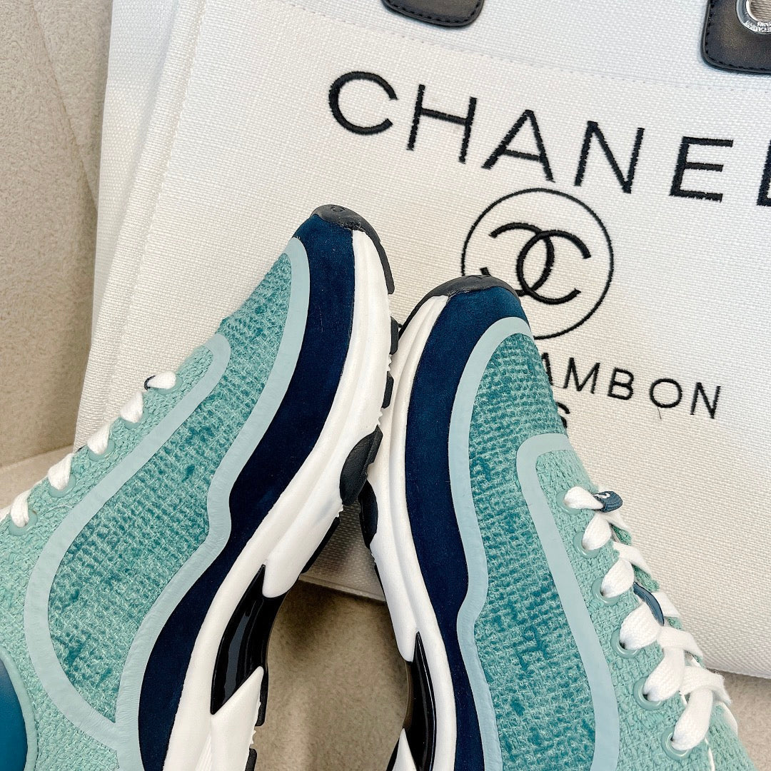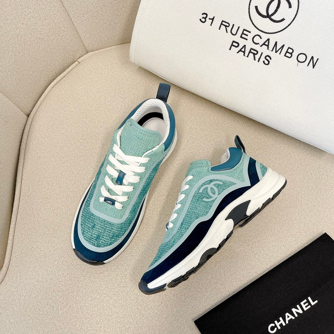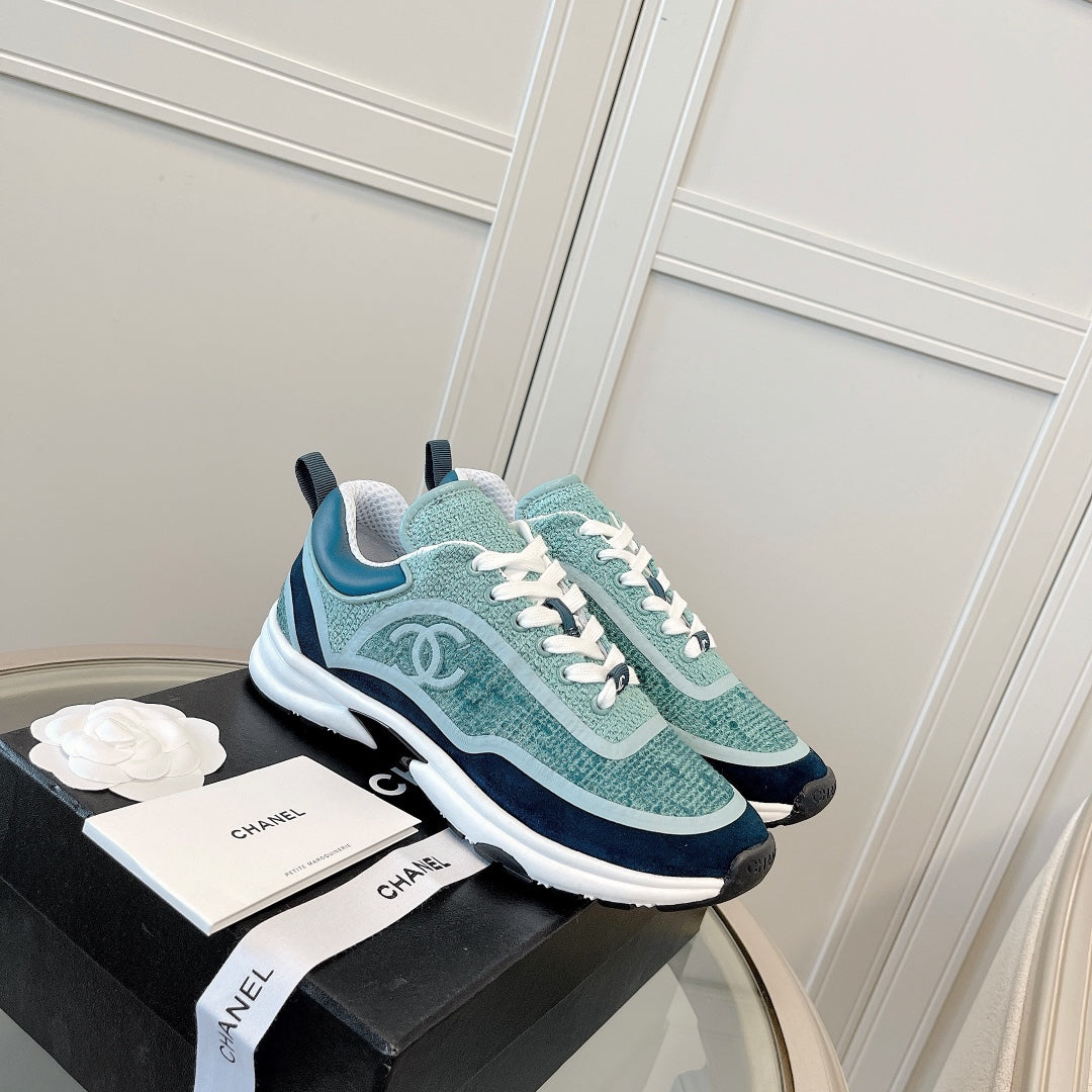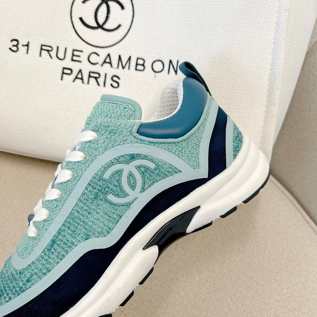 CC Low Top Sneakers Green & Turquoise Tweed Suede 527568