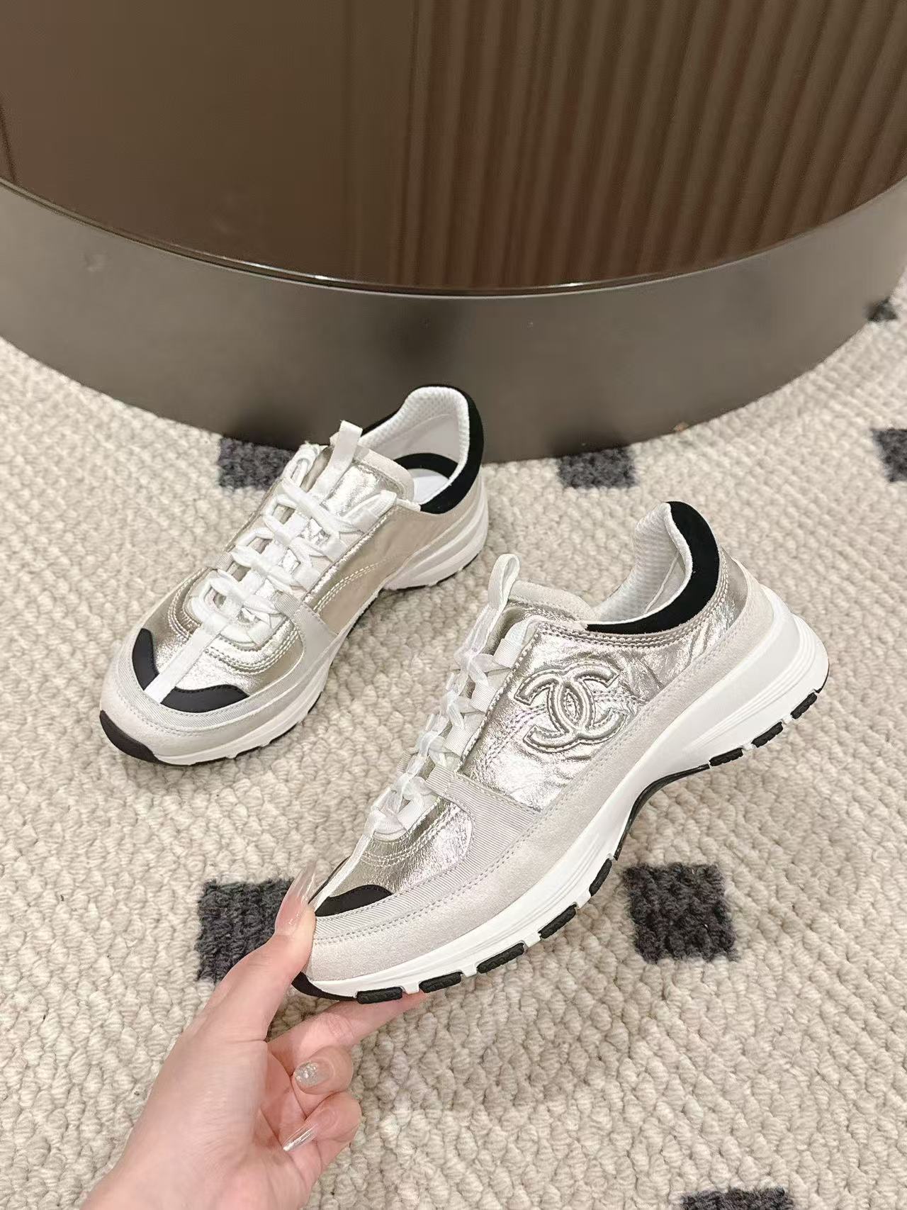 CC Métiers d’art Trainers Black Sliver Laminated & Suede Calfskin