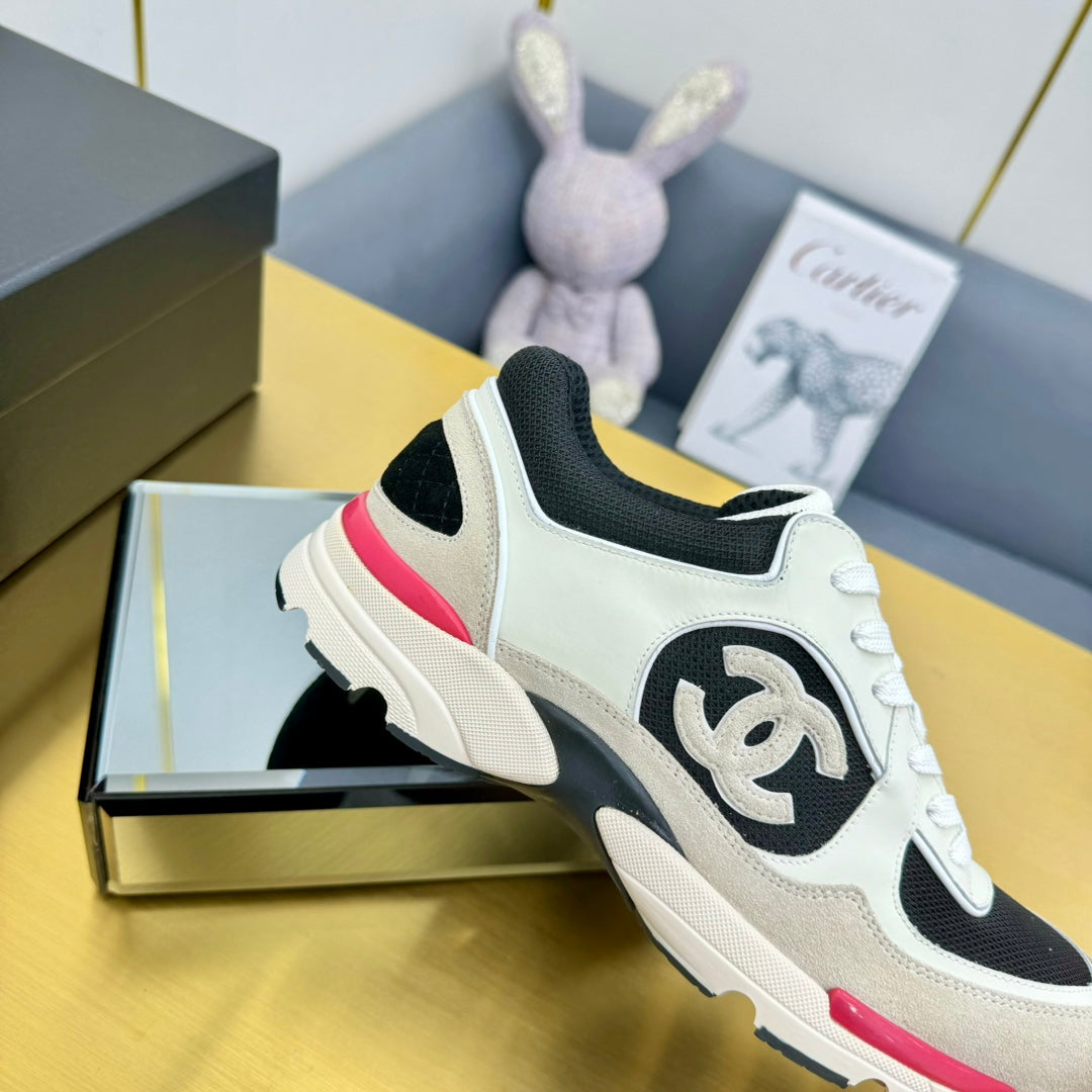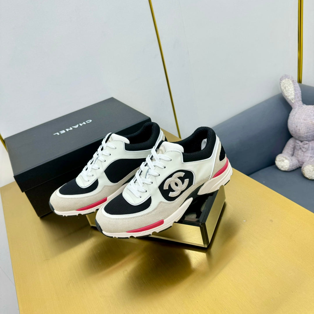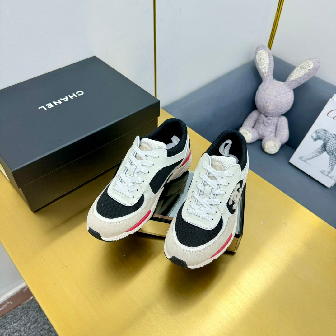 cc womens sneaker in black wool tweed and white beige suede calfskin 137573