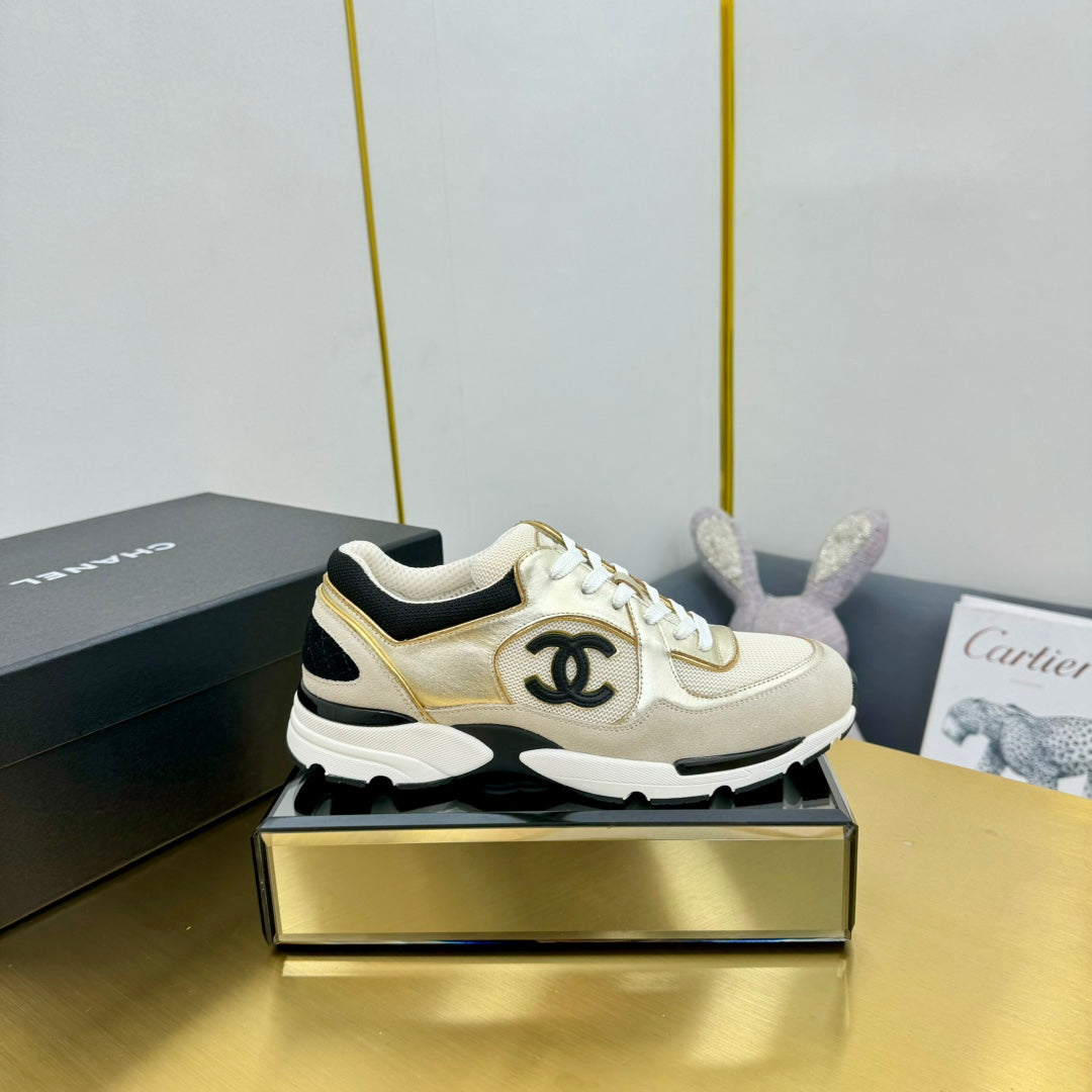 cc womens sneaker in light gold wool tweed gold calfskin and beige suede calfskin 137569