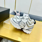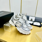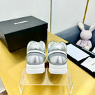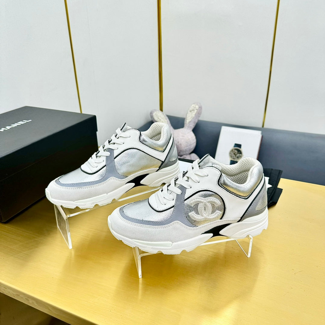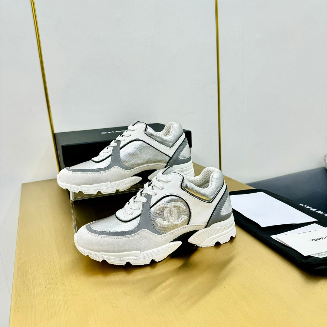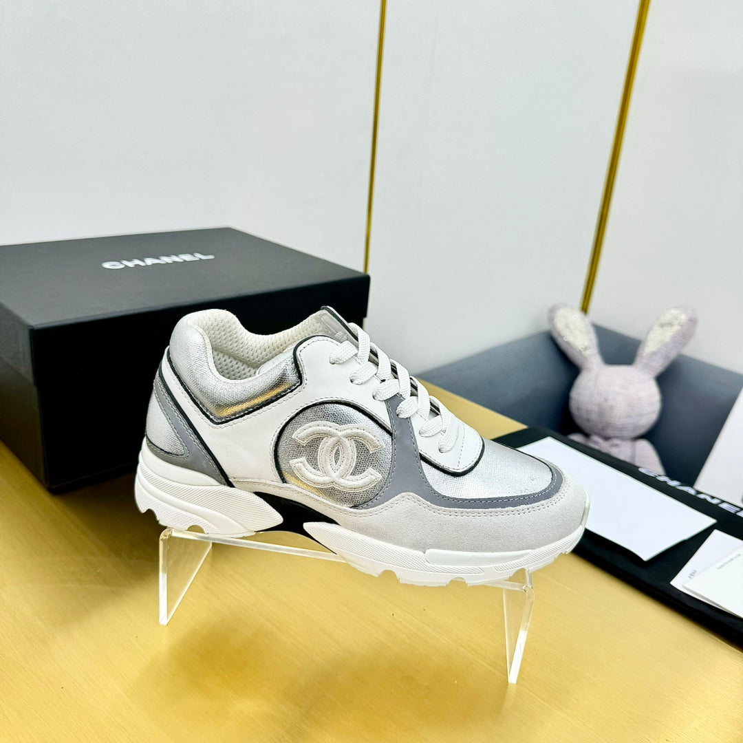 cc womens sneaker in silver wool tweed and white grey suede calfskin 137608