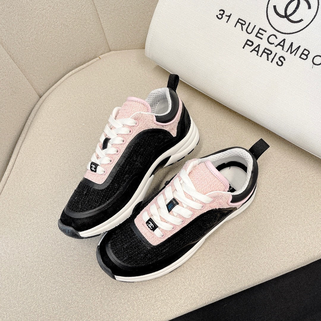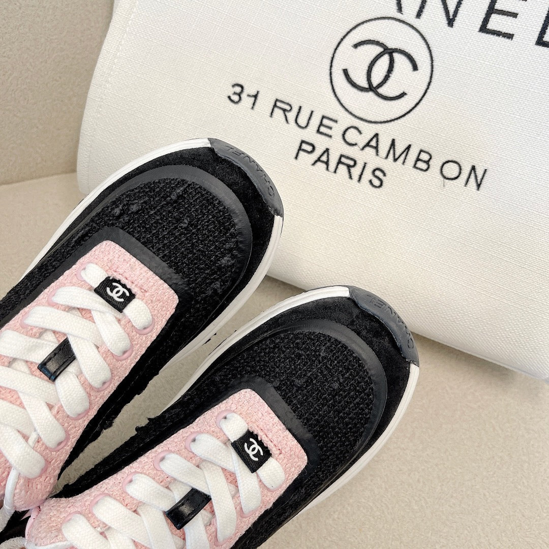 CC Low Top Sneakers Black & Pink Tweed Suede 527566