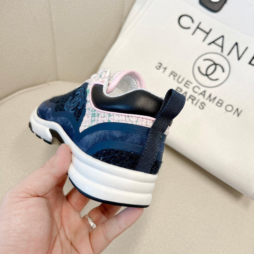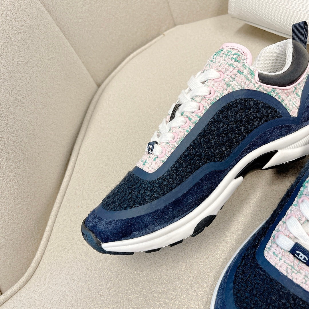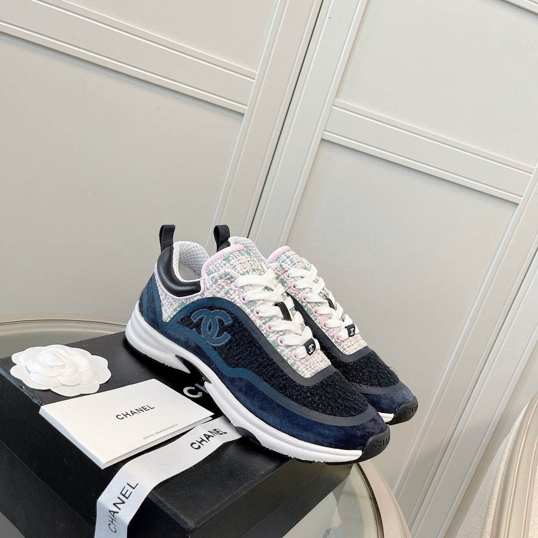 CC Low Top Sneakers Black & Blue Tweed Suede 527567