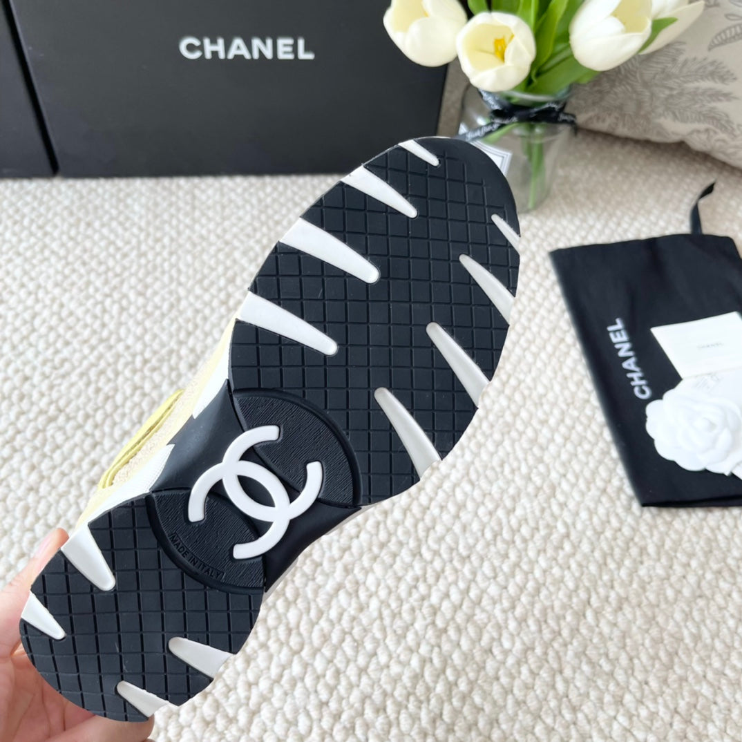 cc sneaker beige tweed yellow suede