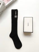• Classic letter logo knee-high socks made of 3D silicone material from CC, leg socks