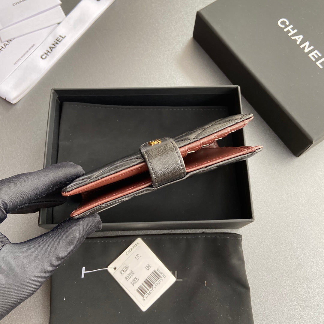 CC 96066 Compact Wallet Black Sheepskin GHW 234609