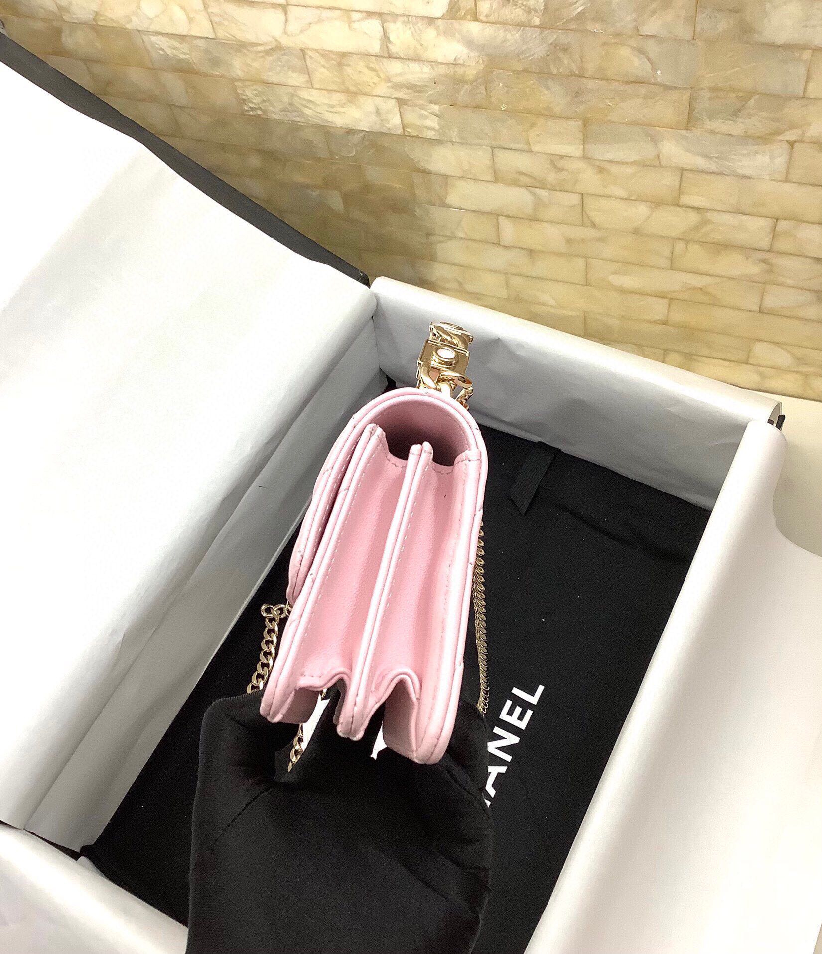 cc woc 13cm with top handle pink quilted calfskin gold hardware
