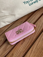 cc zipped wallet 11cm pink caviar gold hardware
