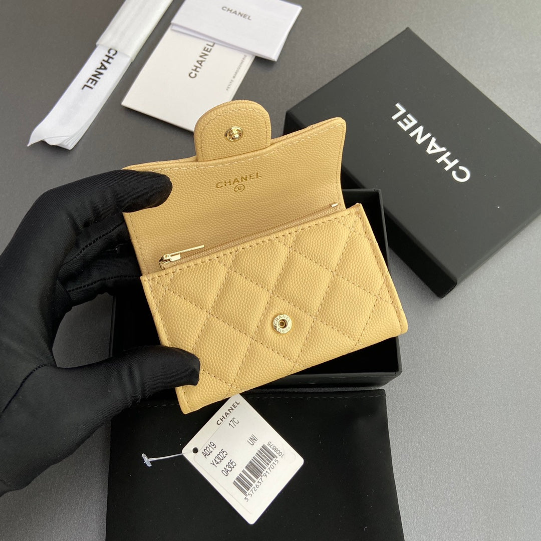 CC Zipper Flap Card Holder Yellow Caviar GHW 234663