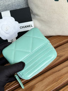 cc 19 zipped coin purse 11cm turquoise blue lambskin gold hardware