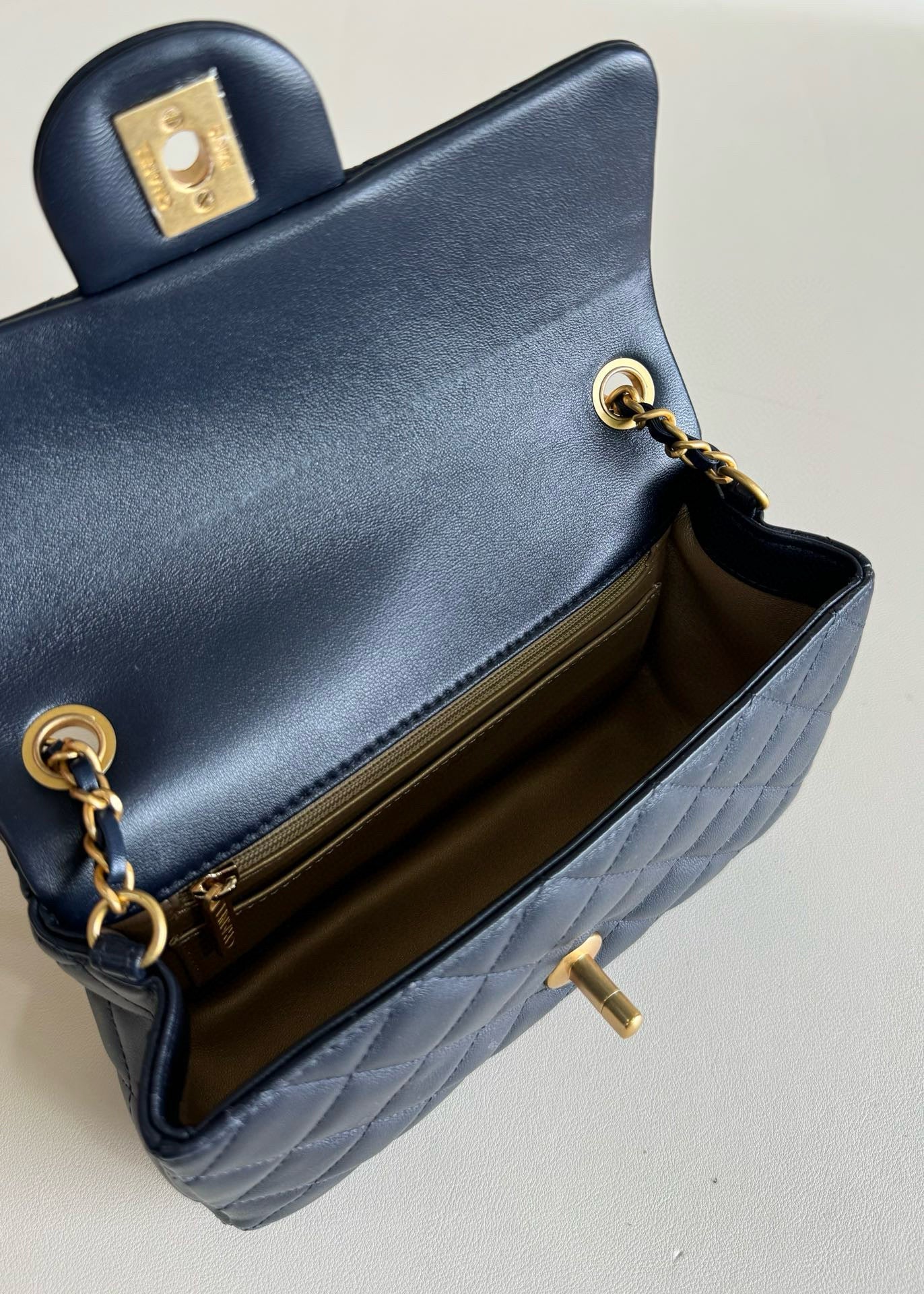 • All leather on the bag is made from calfskin or lambskin of the first layer depending on the style and make of the bag.
