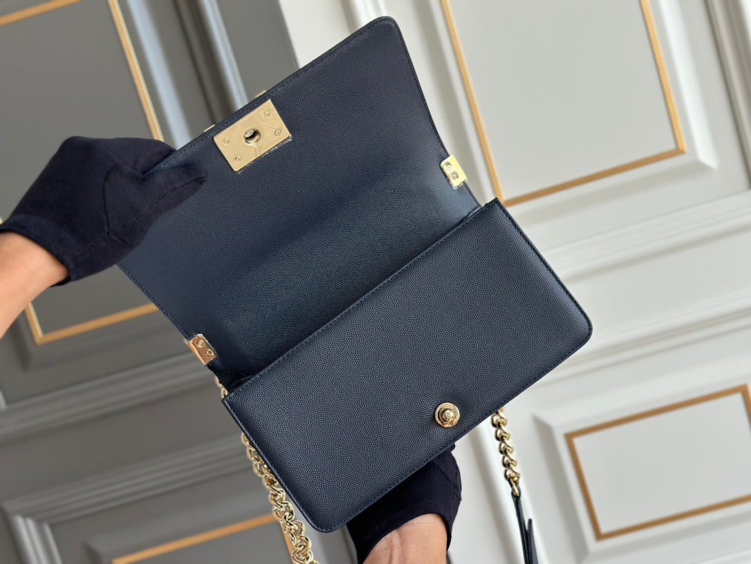 boy medium 25 dark blue chevron caviar ghw