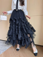 CC 25 Mesh Long Skirt Black Polyester Fiber