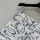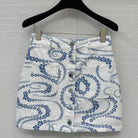 CC 25 Printed Denim Single-breasted Short Skirt Blue White Cotton