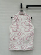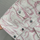 CC 25 Printed Denim Vest Jacket Pink White Cotton