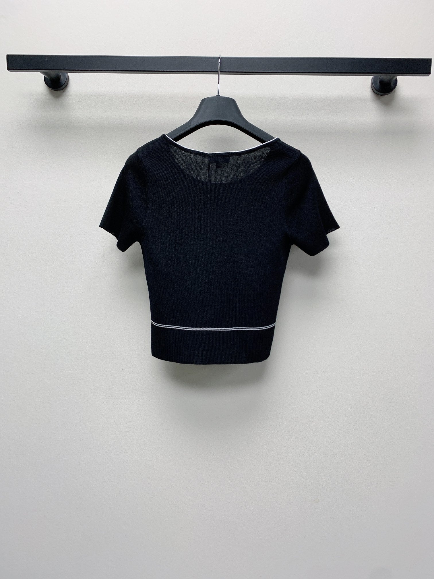 CC 25 Round Neck Knitted Embroidered Logo Top in Black 277581