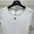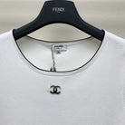 CC 25 Round Neck Knitted Embroidered Logo Top in White 277579