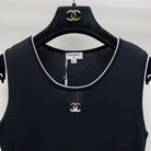 CC 25 Round Neck Knitted Embroidered Logo Vest Dress in Black 277585