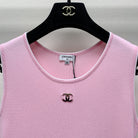 CC 25 Round Neck Knitted Embroidered Logo Vest Dress in Pink 277583