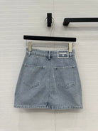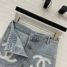 CC 25 Single-breasted Short Skirt Light Blue Denim Cotton