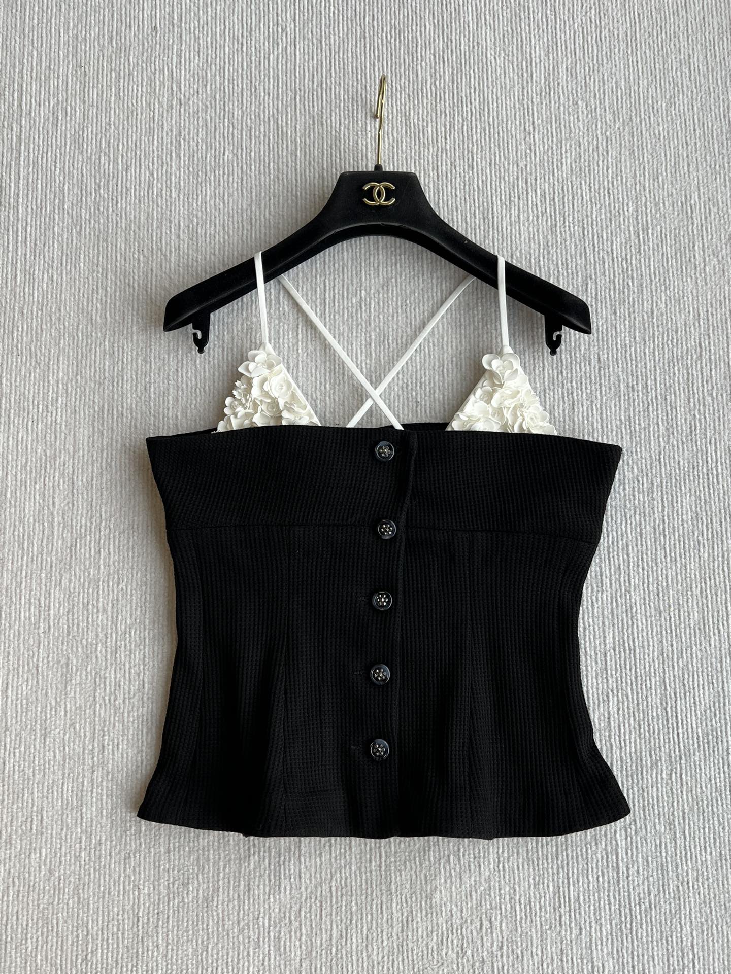 CC 25 Splicing Tube Top Camisole Black and White Mixed Fiber Waffle Jacquard Fabric 275554