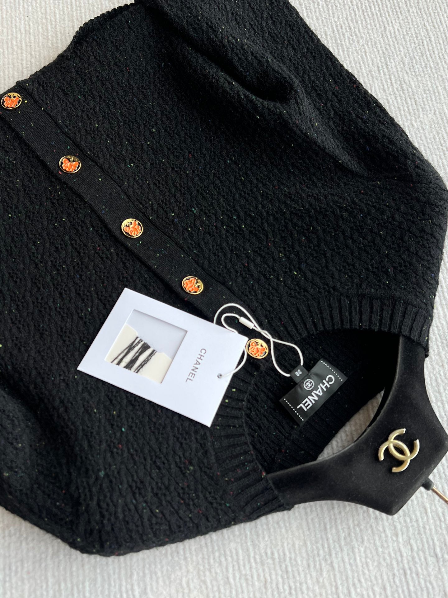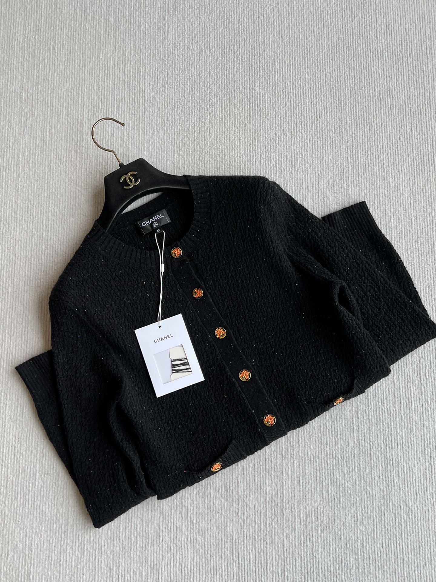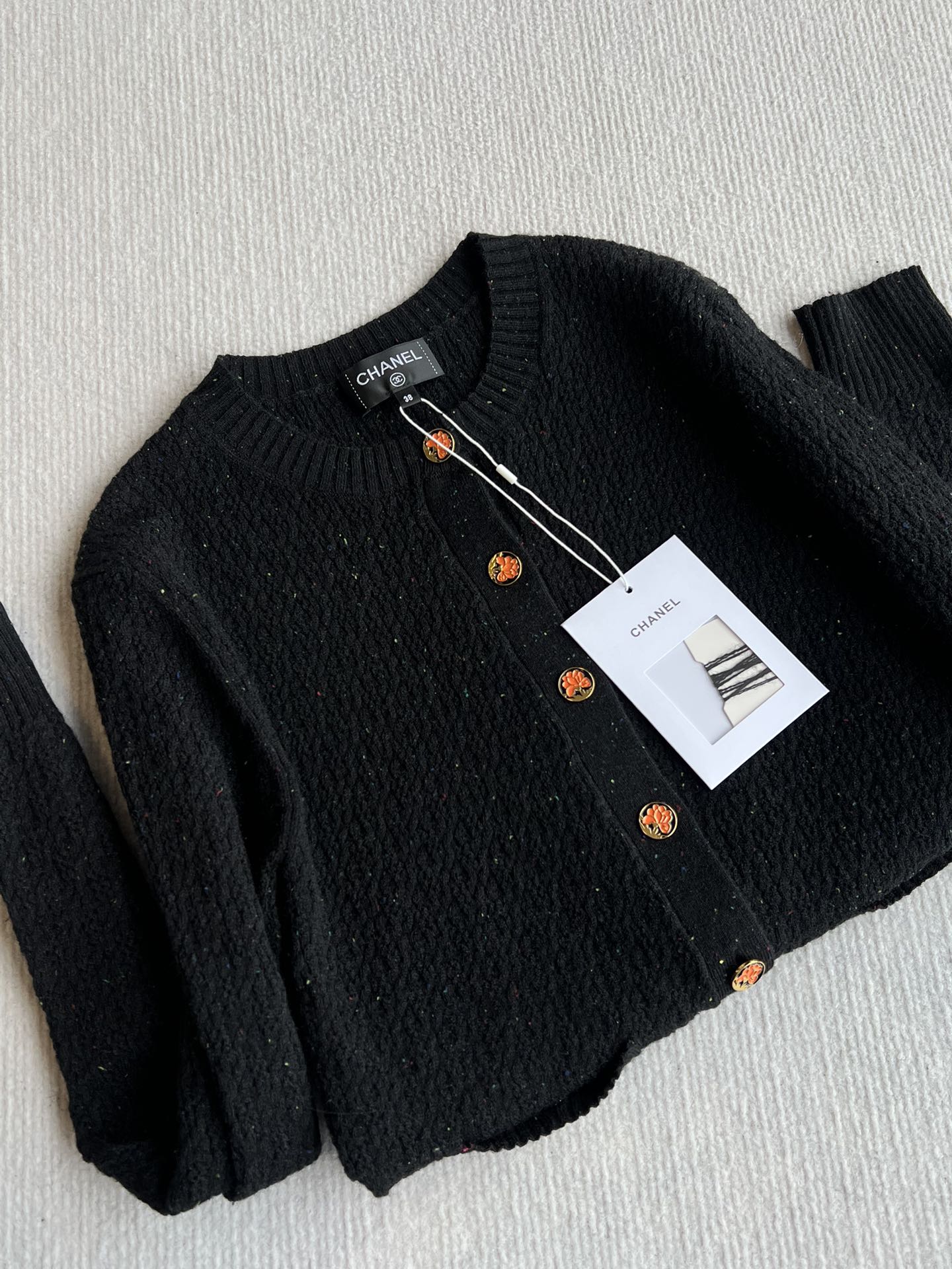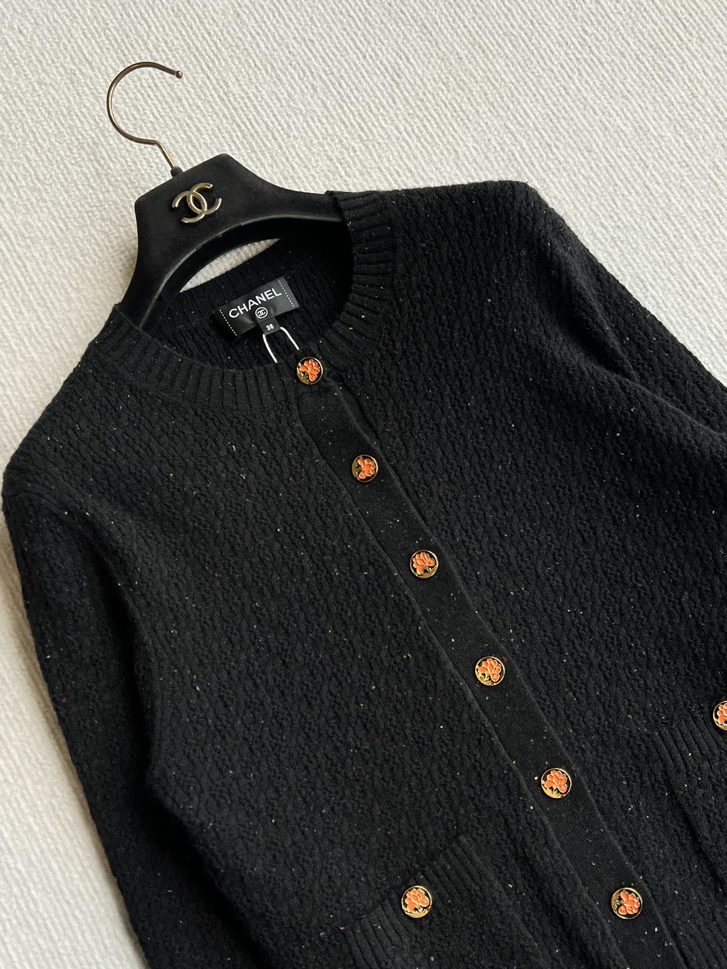 CC 25A Classic Round Neck Floral Wool Cardigan In Black 275516