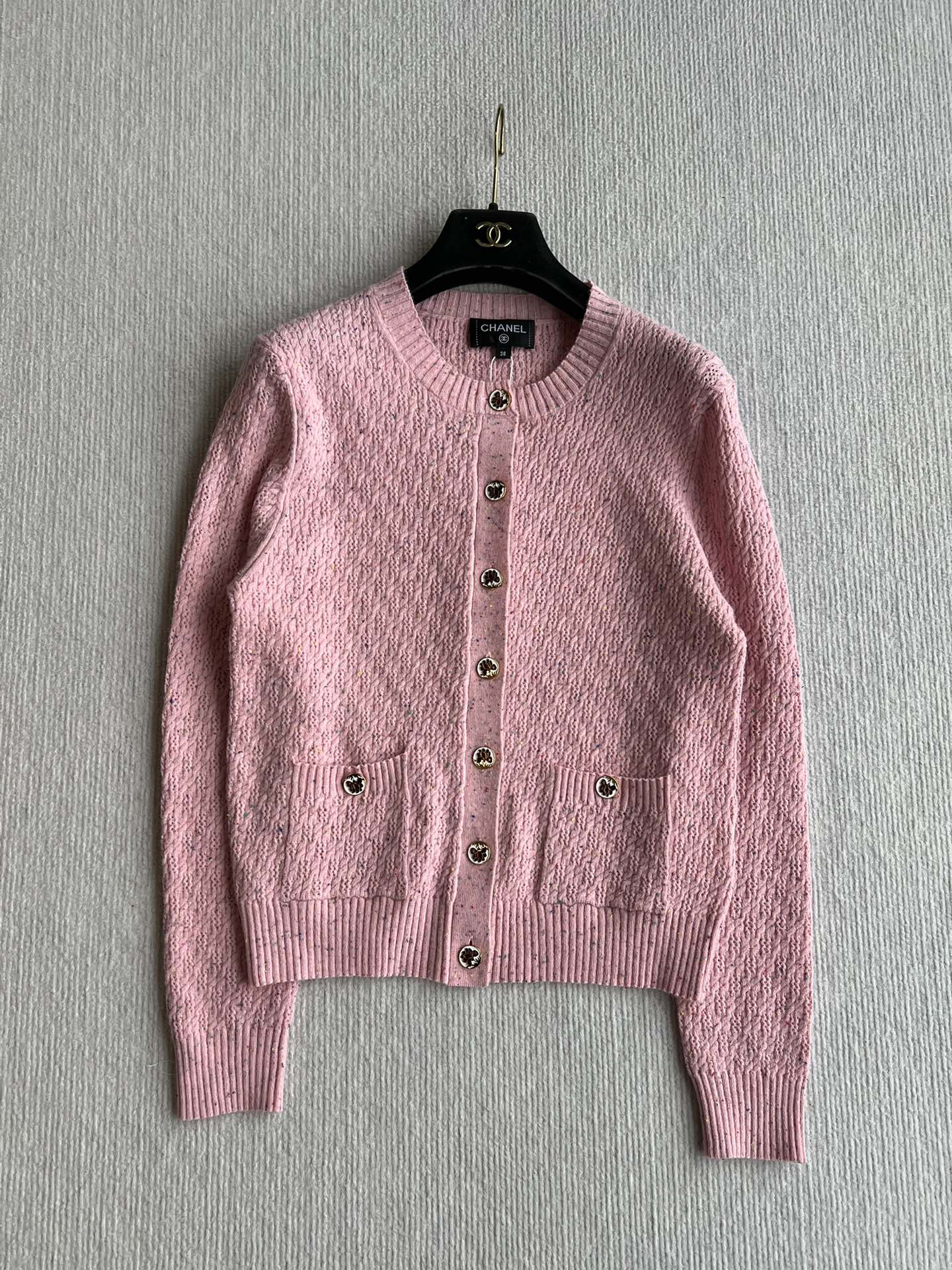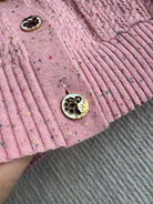 CC 25A Classic Round Neck Floral Wool Cardigan In Pink 275515