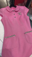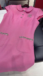 CC Doll Collar Waist Dress White Pink Cotton