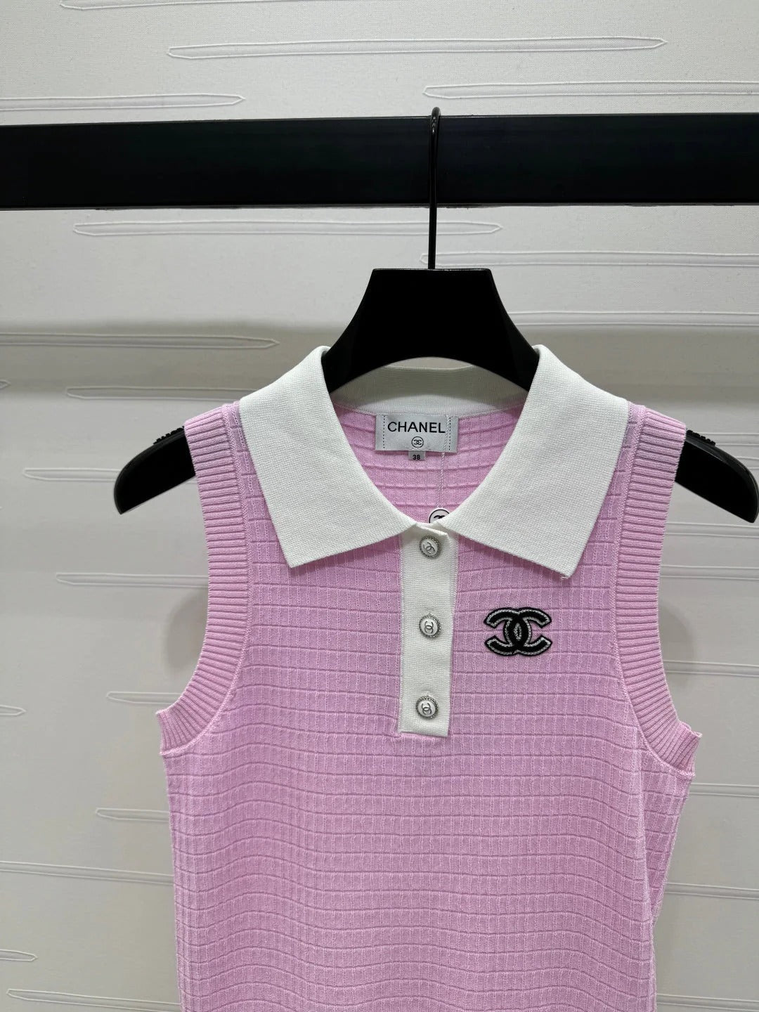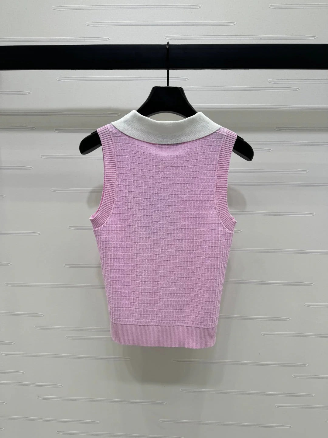CHANEL 25S DOUBLE C LOGO KNIT COLLAR VEST 264071