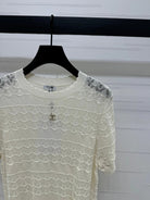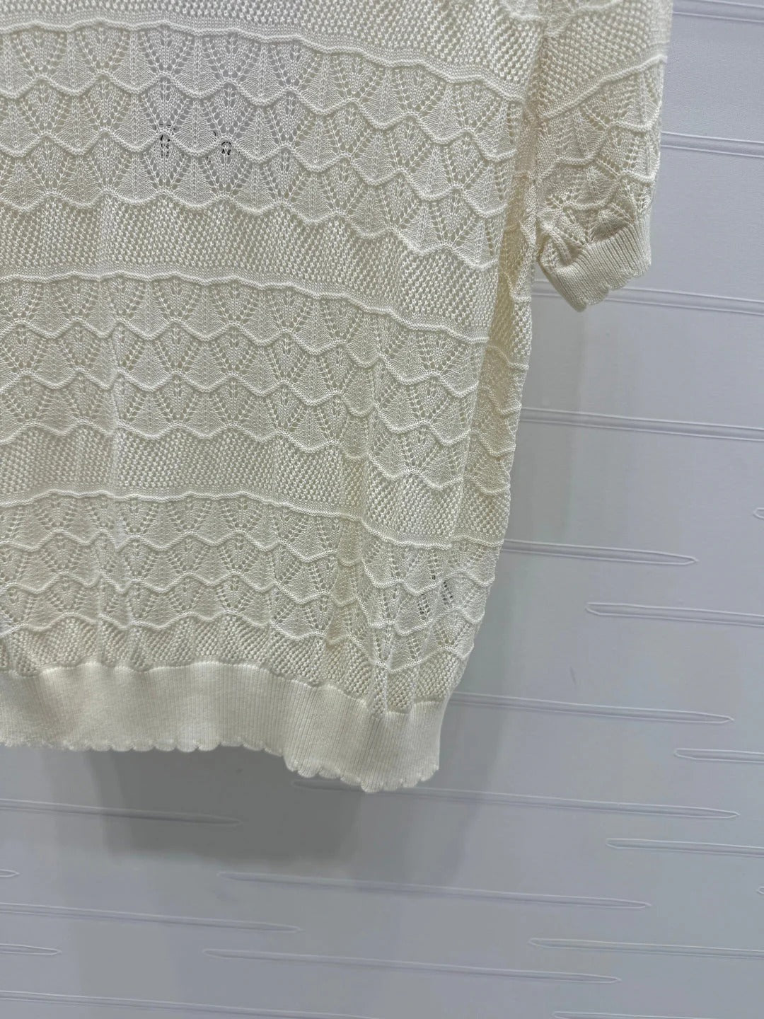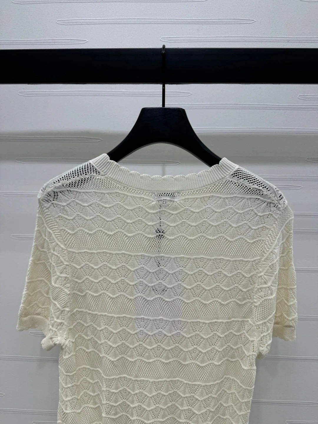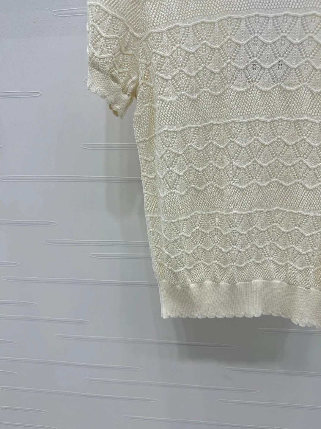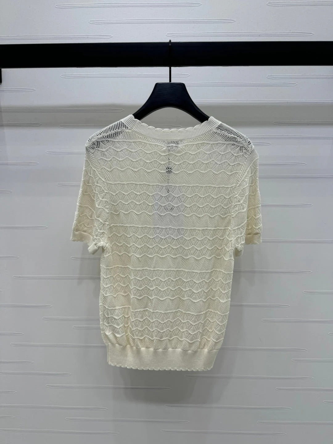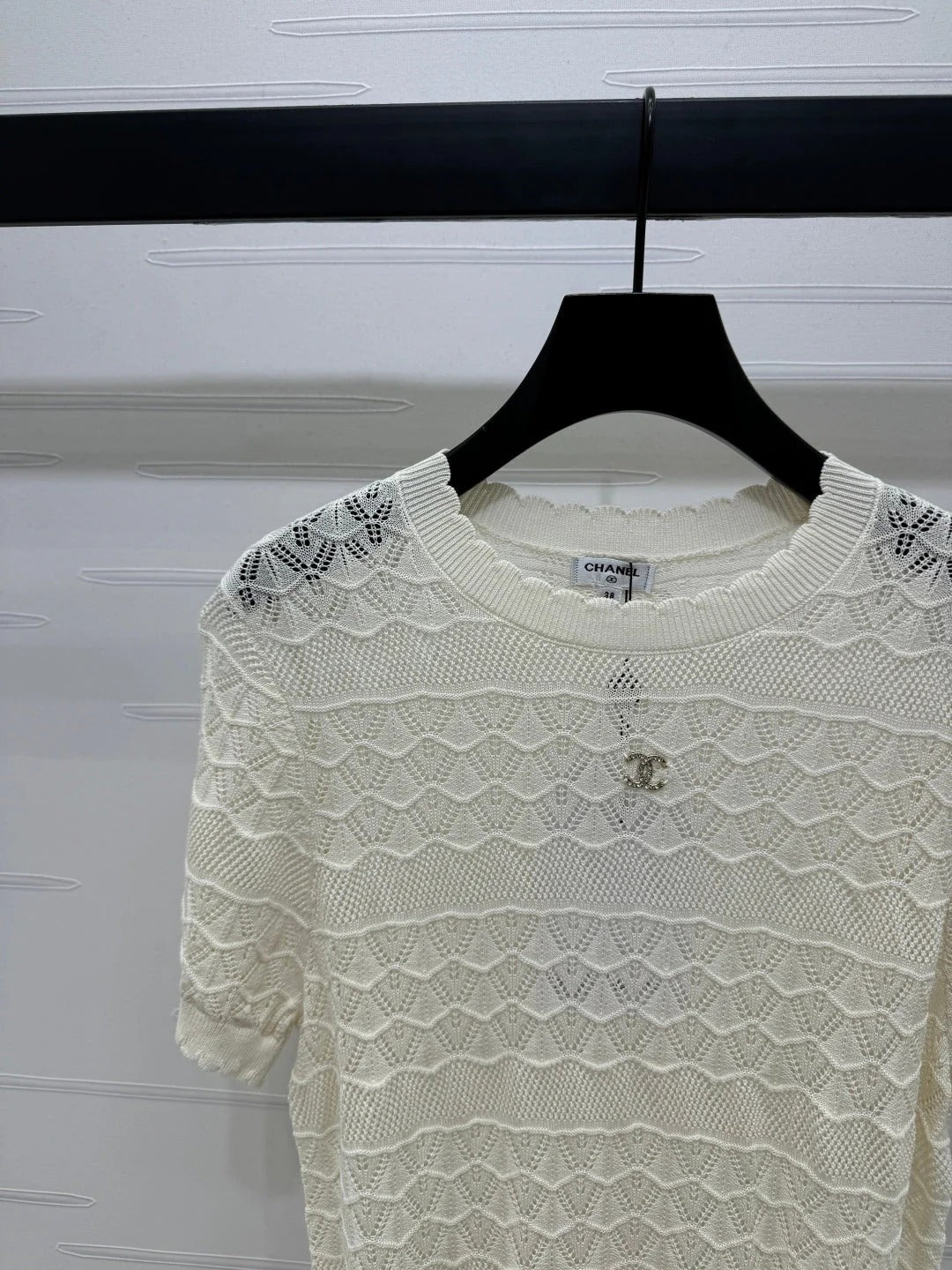 CHANEL 25S HOLLOW KNIT SHORT SLEEVE TOP 264150