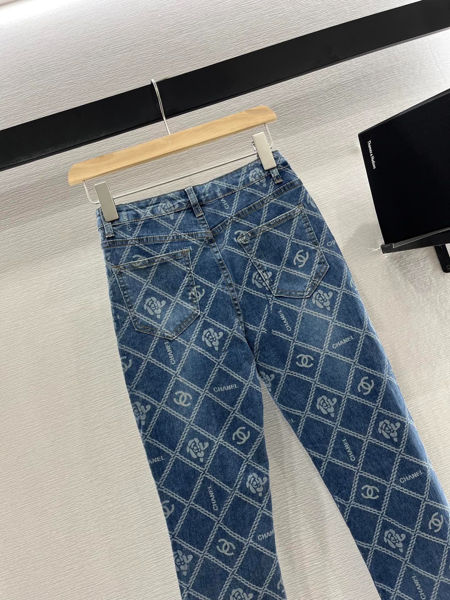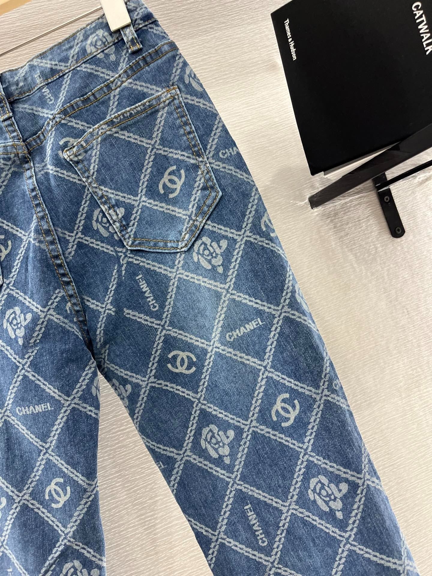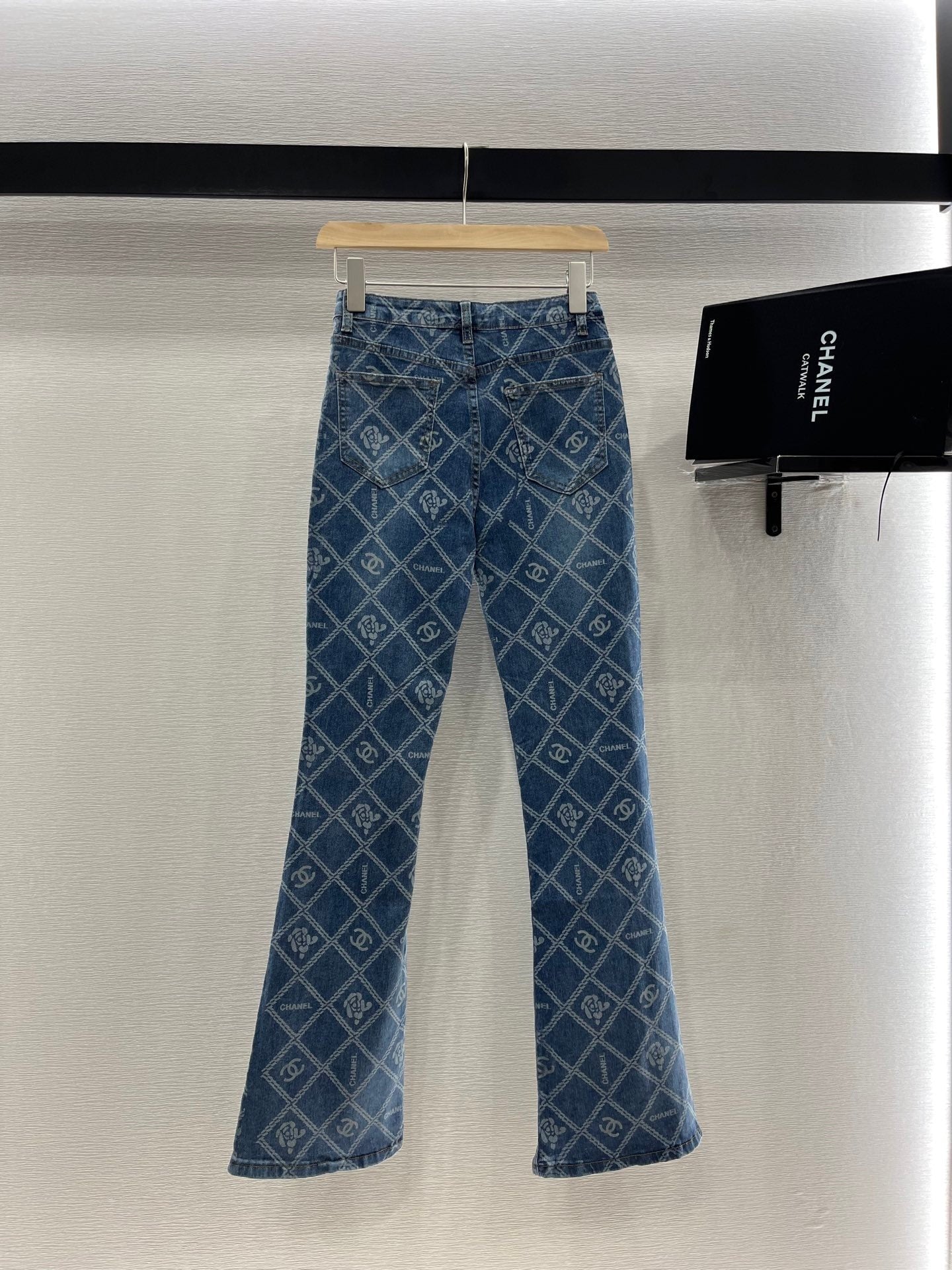 CHANEL FLARED JEANS WITH LOGO PRINT 263984