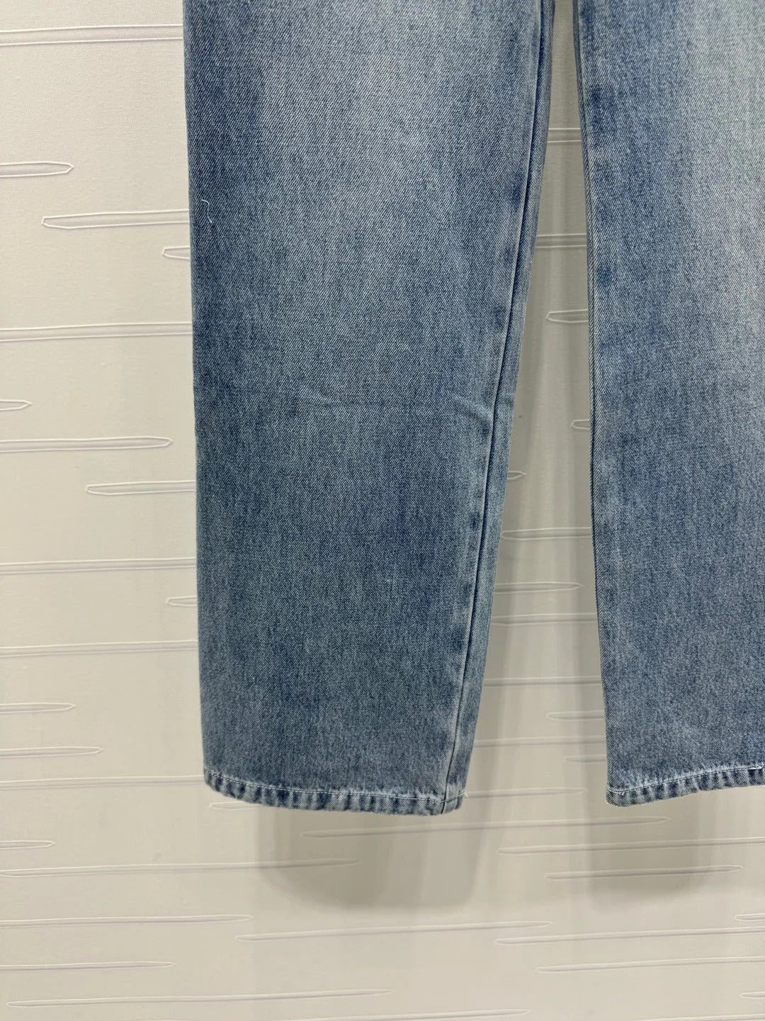 CHANEL HIGH-WAIST STRAIGHT-LEG DENIM PANTS