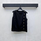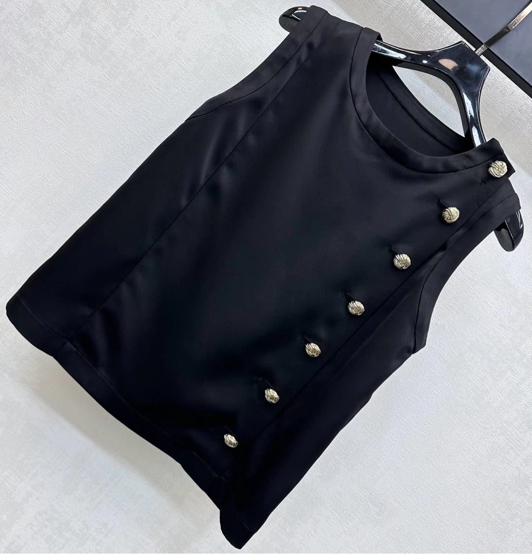 CHANEL SLEEVELESS ROUND-NECK BUTTON-UP TOP 274769