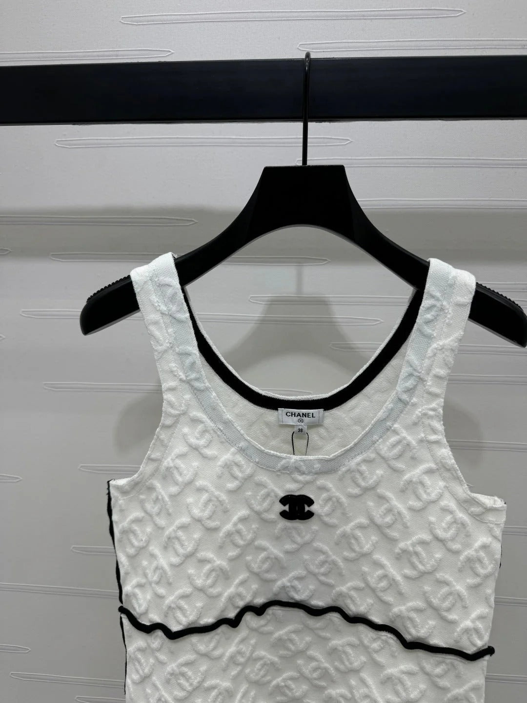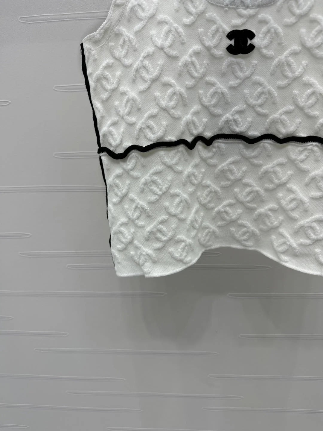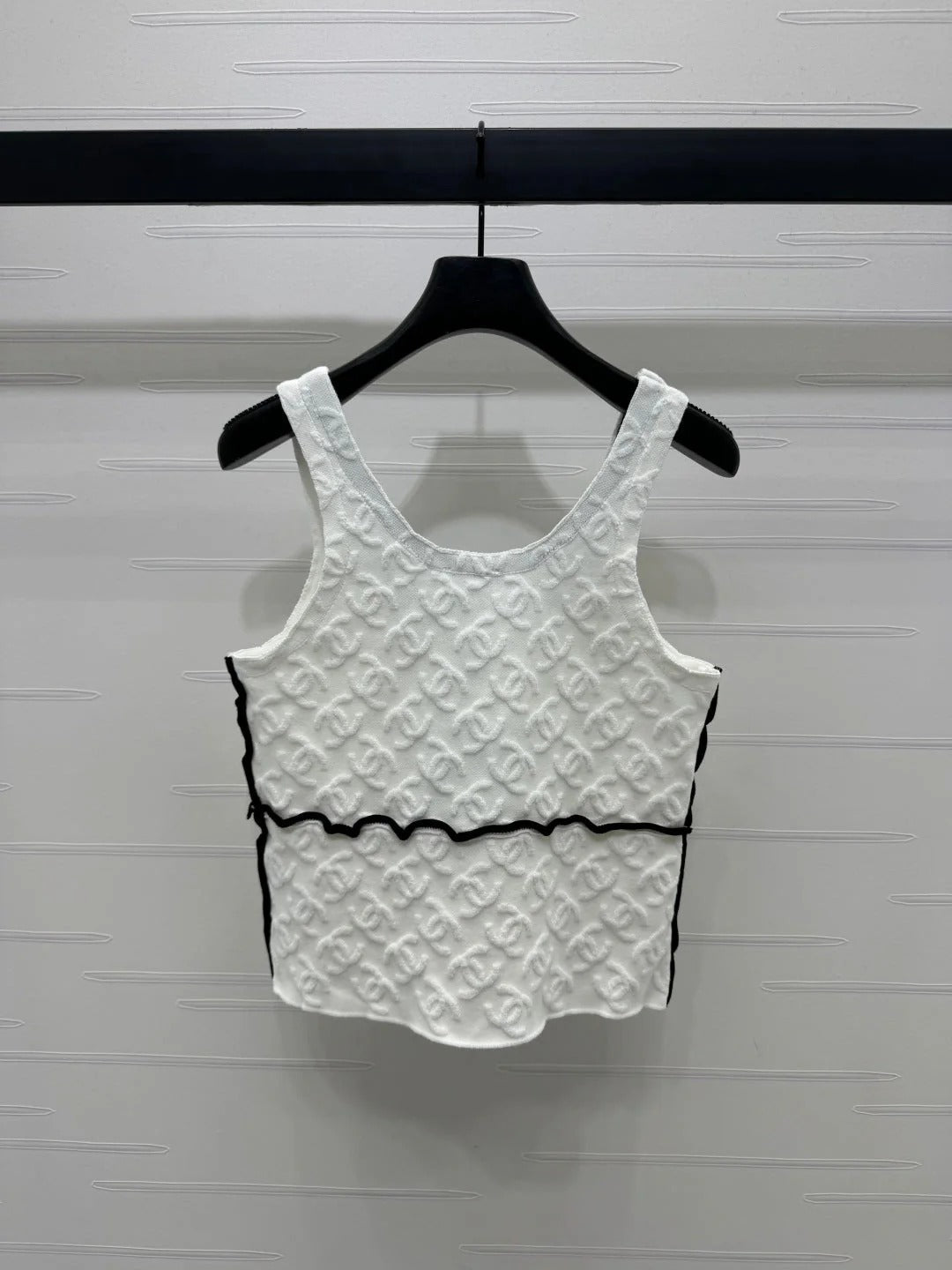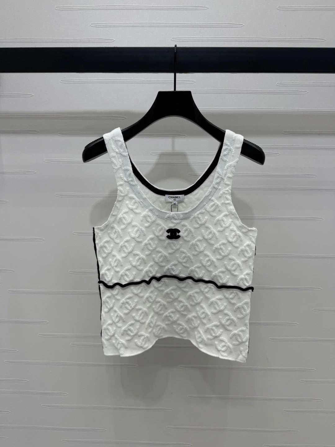 CHANEL SOFT U-NECK KNIT TOP IN BLACK AND WHITE