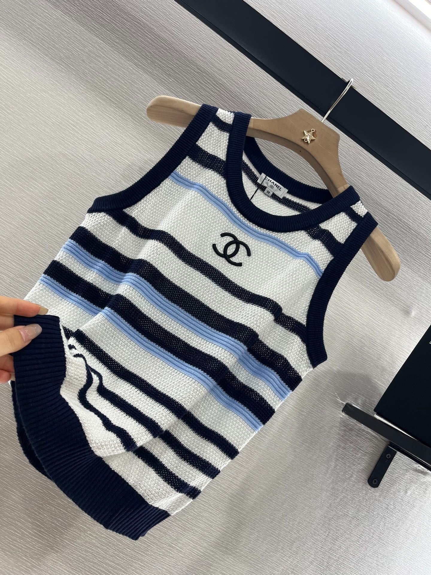 CHANEL STRIPED SLEEVELESS KNIT TOP 263401